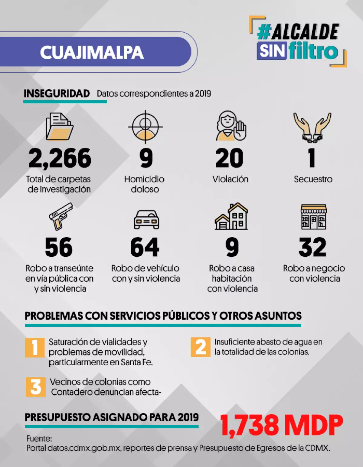Para cumplir en este tema, el priista decidió redirigir poco más de la mitad del presupuesto que Cuajimalpa tiene para obras públicas —unos 300 millones de pesos— hacia tareas como contratar policías, adquirir patrullas o comprar cámaras de vigilancia.