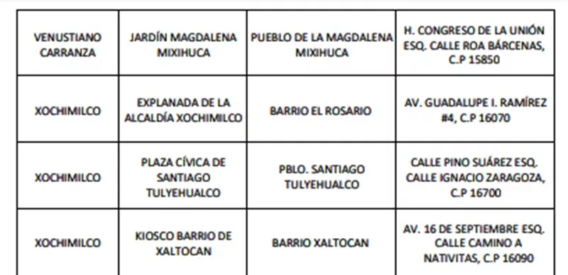 • Hospital Materno Infantil Xochimilco Calzada Nativitas y 16 de Septiembre s/n, col. Barrio Xaltocan. 16090 Tel. 55-56760555