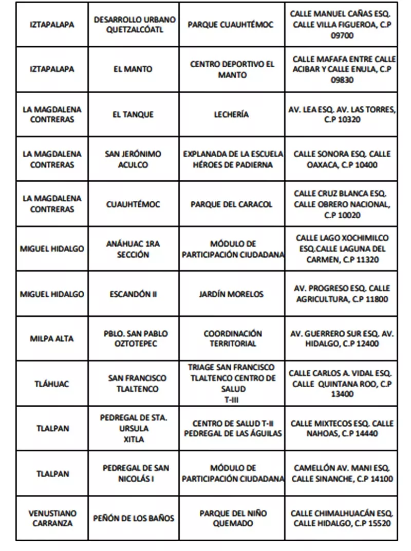 • Hospital General Tláhuac "Dra. Matilde Petra Montoya La Fragua" Av. La Turba esq. Gabriel Mistral #655, col. Villa Centroamericana y del Caribe. Tel. 55-58501011