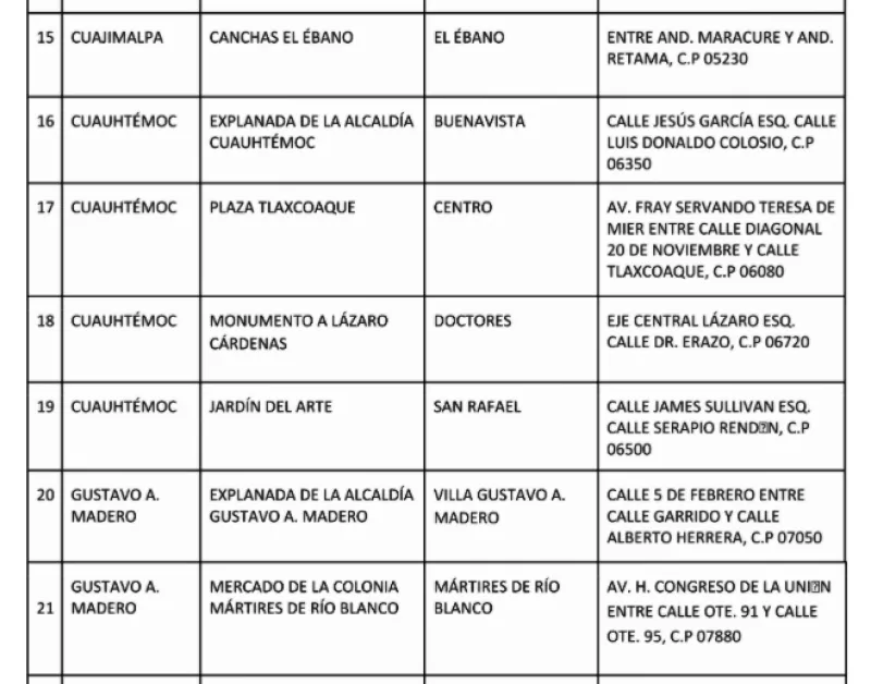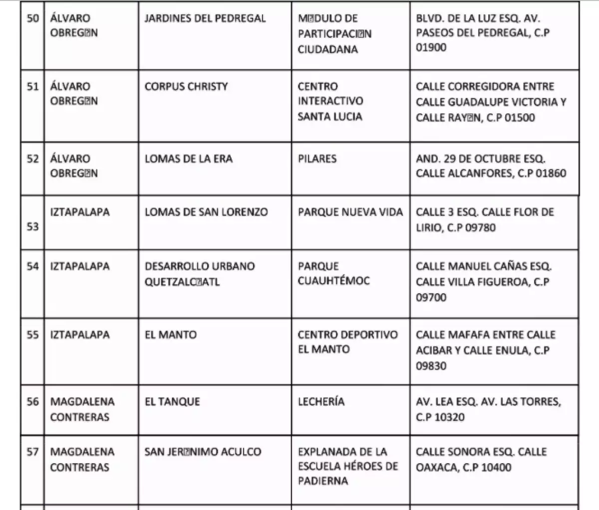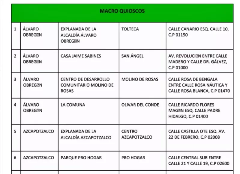 La nueva ubicación de los kioscos y macrokioscos también puede ser consultada en el sitio web http://test.covid19.cdmx.gob.mx o enviando un mensaje SMS sin costo al 51515 con la palabra "prueba".