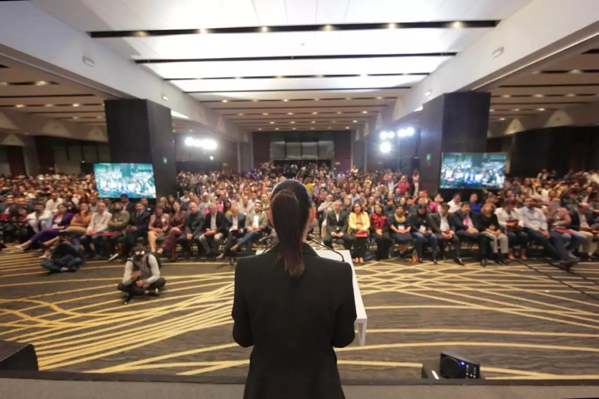 La primera en tomar la palabra fue Mariela Gutiérrez Escalante, la presidenta municipal de Tecámac, Estado de México, quien aseguró que el país hoy vive un movimiento feminista y de empoderamiento de las mujeres en la vida pública. Expresó abiertamente su postura a favor de la jefa de gobierno como posible candidata a la presidencia de la república.