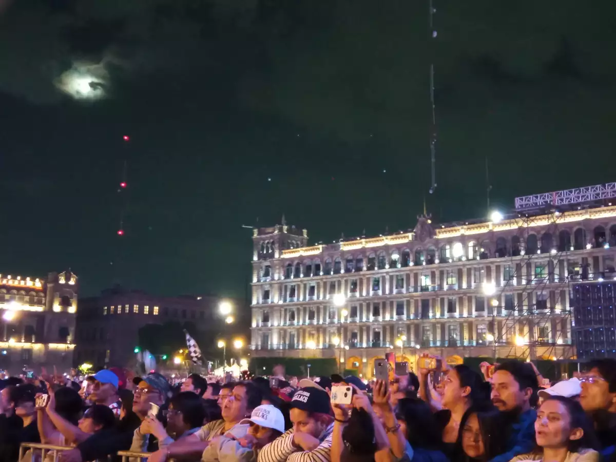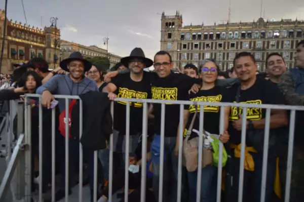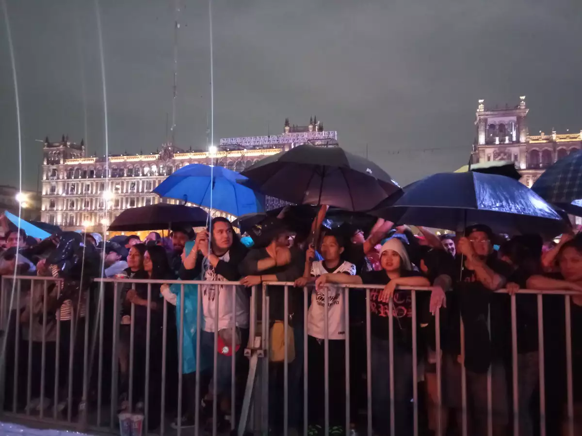 Después de una lluvia, con el piso de la plancha del Zócalo ya seco, al igual que la ropa de los asistentes, y con paraguas guardados, a las 8 en punto de la noche, retumbó la gran Tenochtitlán. La banda puntual a escena: suena Cadillacs, la legendaria canción con que abren todas sus presentaciones para entrar en calor.