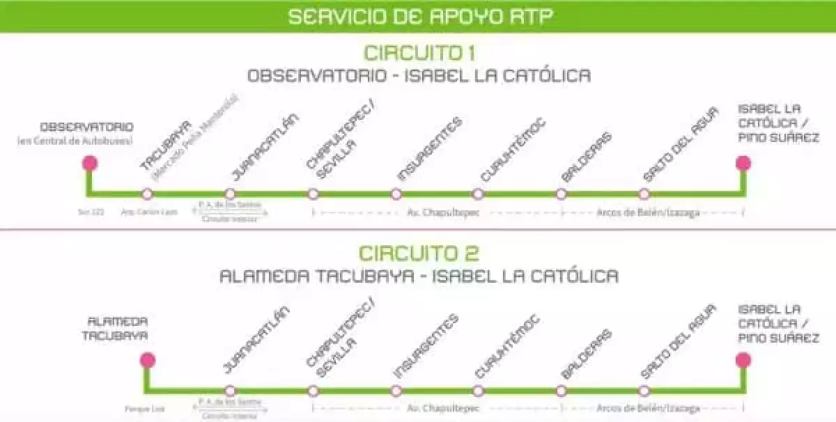 Las personas usuarias podrán utilizar el Servicio de Apoyo de RTP cuyo costo es de 5 pesos con transbordo gratuito (con tarjeta MI) a Metro en el tramo Isabel la Católica/Pino Suárez-Pantitlán.