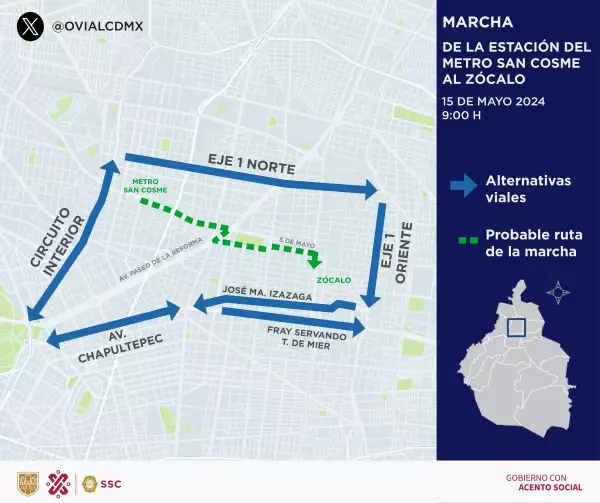 Para evitar la marcha, el Centro de Orientación Vial de la Secretaría de Seguridad Ciudadana de la Ciudad de México recomienda tomar las alternativas viales: