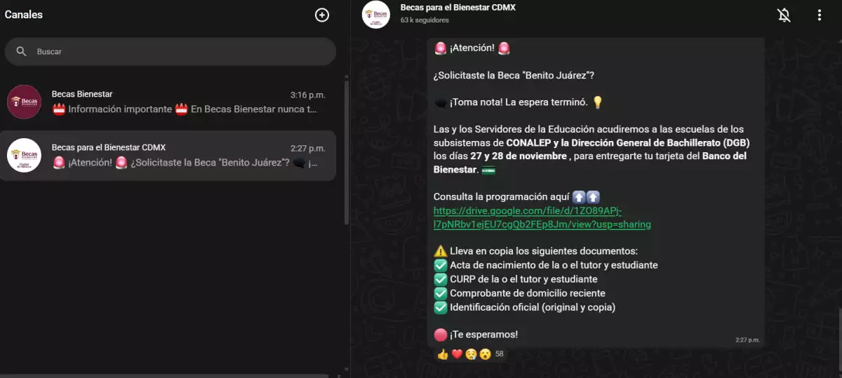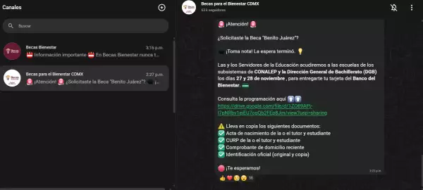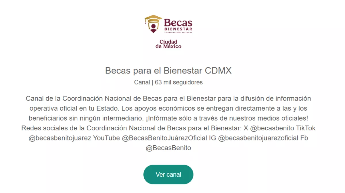 Los canales están disponibles en el siguiente enlace: https://linktr.ee/CanalesBecasBienestar