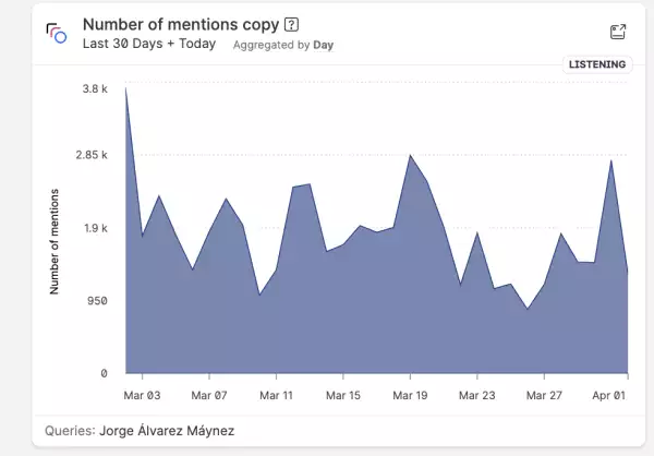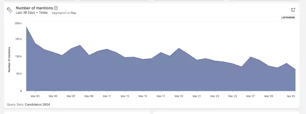 Concluido el primer mes de campañas, en un corte realizado este 2 de marzo, el total de interacciones que se registraron fue de 241,691 menciones, sin embargo si se ve el número que registra el 1 de abril hasta después de las 15:00 horas, apenas se alcanzan las 35,941 menciones.