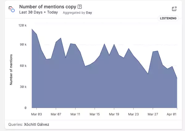 Aunque en este periodo hubo algunos picos el 8 de marzo, con 172,344 menciones, o el 19 de marzo, con 160,695, la caída en la conversación por parte de los usuarios puede referir un hartazgo con el tema político o desinterés.