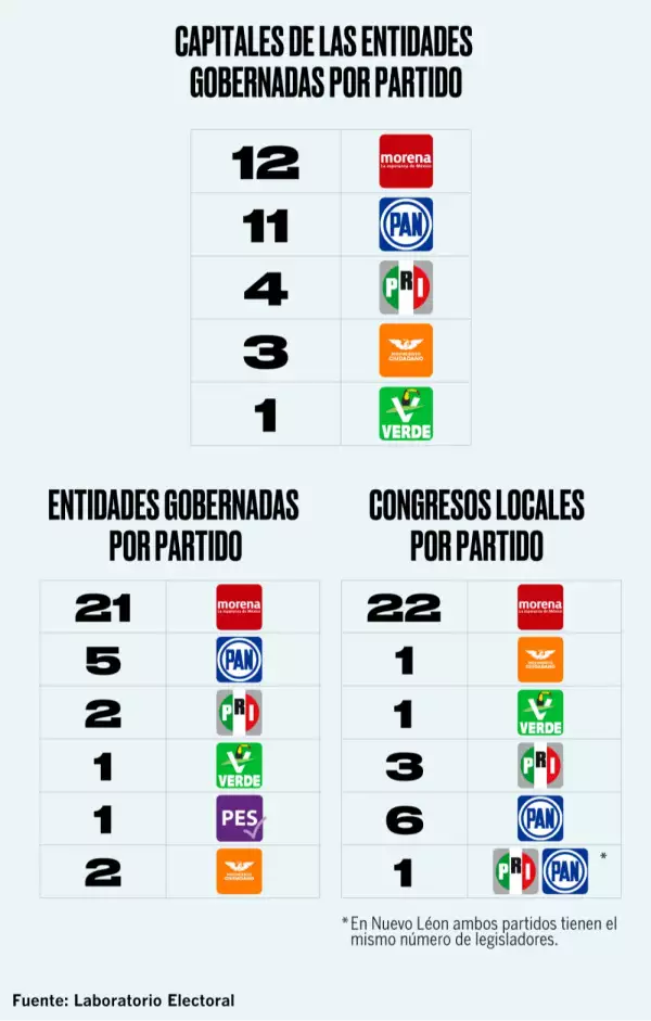 En este proceso electoral está inmerso prácticamente todo el país y Morena llega a la elección como el partido más grande con 21 gubernaturas bajo su siglas, más otras dos de sus aliados (San Luis Potosí y Morelos) que, en suma, lo hacen gobernar a más de 90.8 millones de personas 72% de la población total del país.