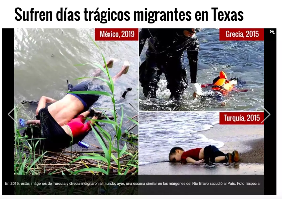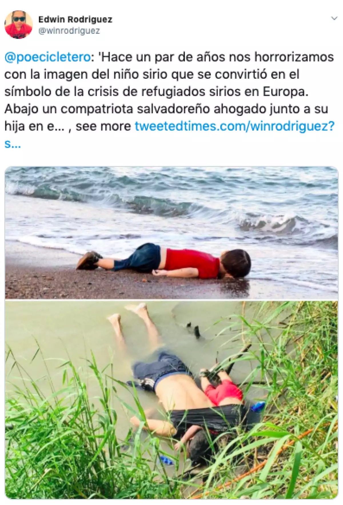 El fotógrafo Abraham Pineda-Jácome, de la agencia EFE, captó los cuerpos de una bebé abrazada a su padre a orillas del río. Se trata de Óscar Alberto, de 25 años de edad, y su hija Valeria, de casi dos años, originarios de El Salvador.