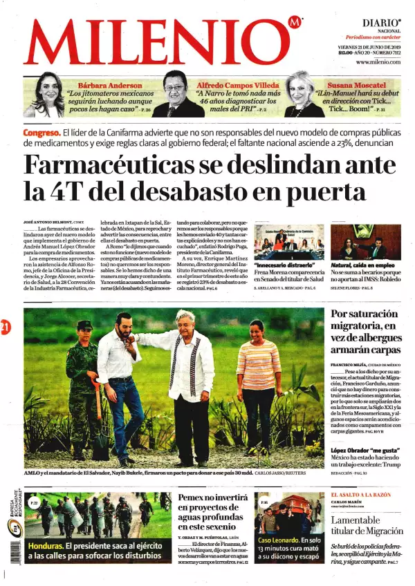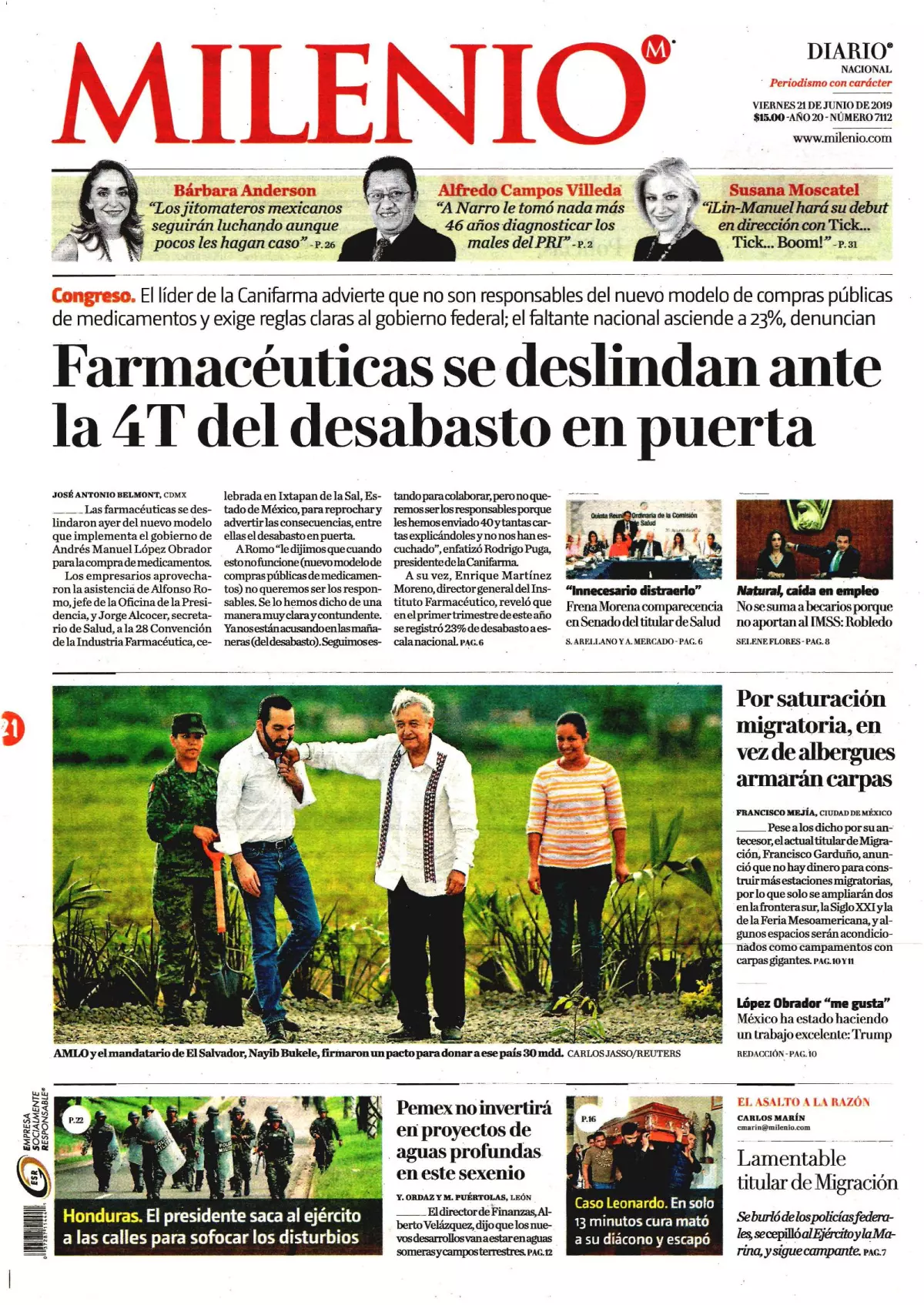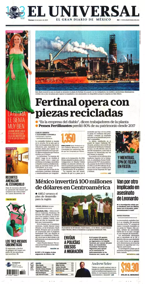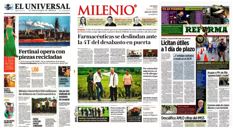 Las condiciones opacas en las que opera la planta de fertilizantes, Fertinal, llamada por sus empleados como “la empresa del diablo”, y el deslinde que hicieron empresarios de la industria farmacéutica del nuevo modelo de gobierno para la compra de medicamentos son dos de los principales temas en las portadas de los diarios.