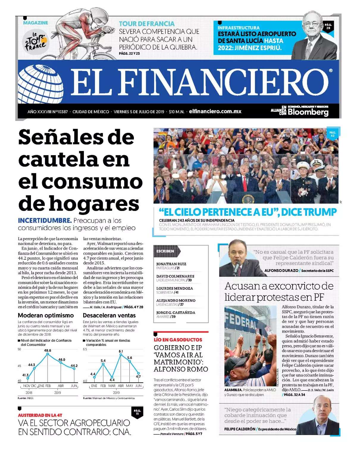 La rebelión de policías federales por supuestos malos tratos y su rechazo a incorporarse a la Guardia Nacional confrontó al expresidente Felipe Calderón con el gobierno de Andrés Manuel López Obrador, reseña El Universal. Mientras las negociaciones con los inconformes fracasaron por segundo día, los policías mantuvieron tomado el Centro de Mando en Iztapalapa y bloquearon las autopistas México-Quéretaro, México-Cuernavaca y México-Pachuca, así como el Periférico oriente.