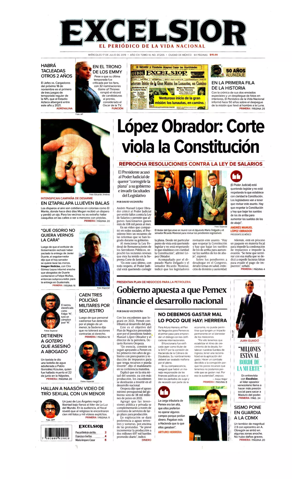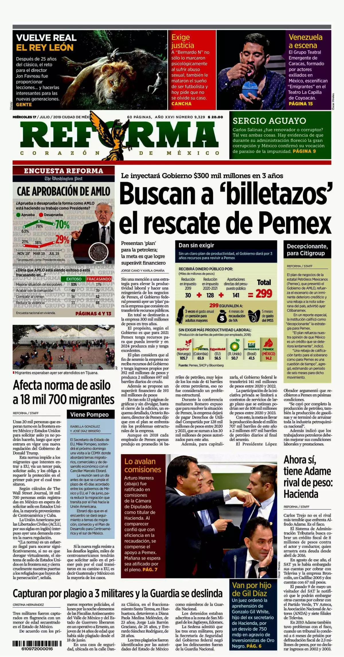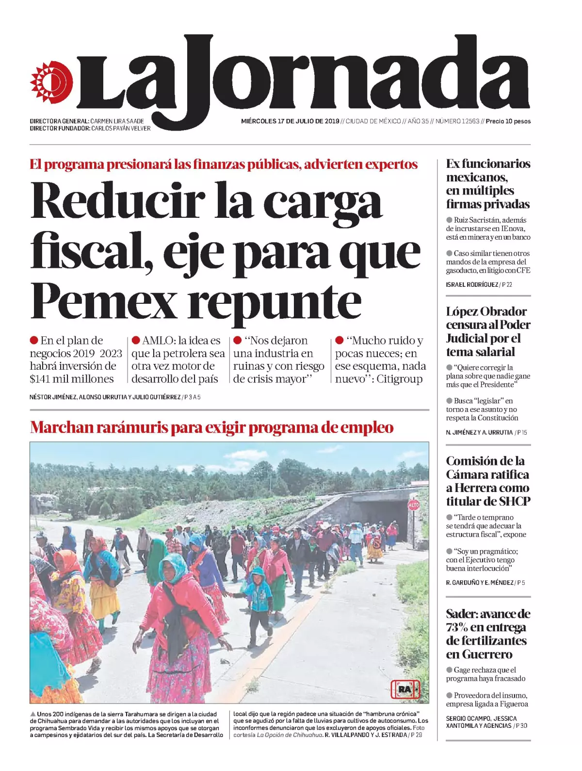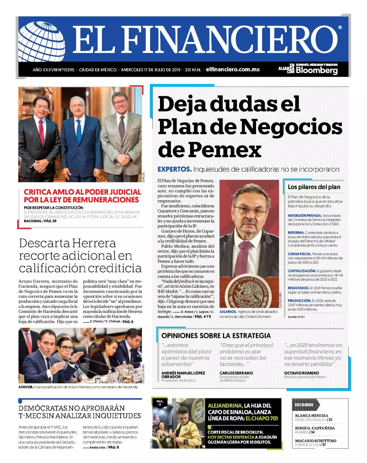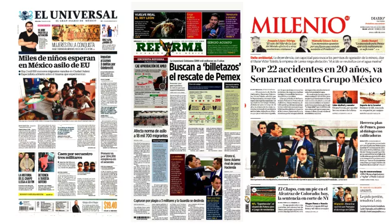 En tanto, La Jornada detalla que el plan de negocios de Pemex 2019-2023, que avaló el Consejo de Administración, plantea que el gobierno federal invierta 141 mil millones de pesos (mmdp) entre 2020 y 2022 en la empresa, además de reducir durante dos años la carga fiscal, que suma 128 mil millones de pesos.