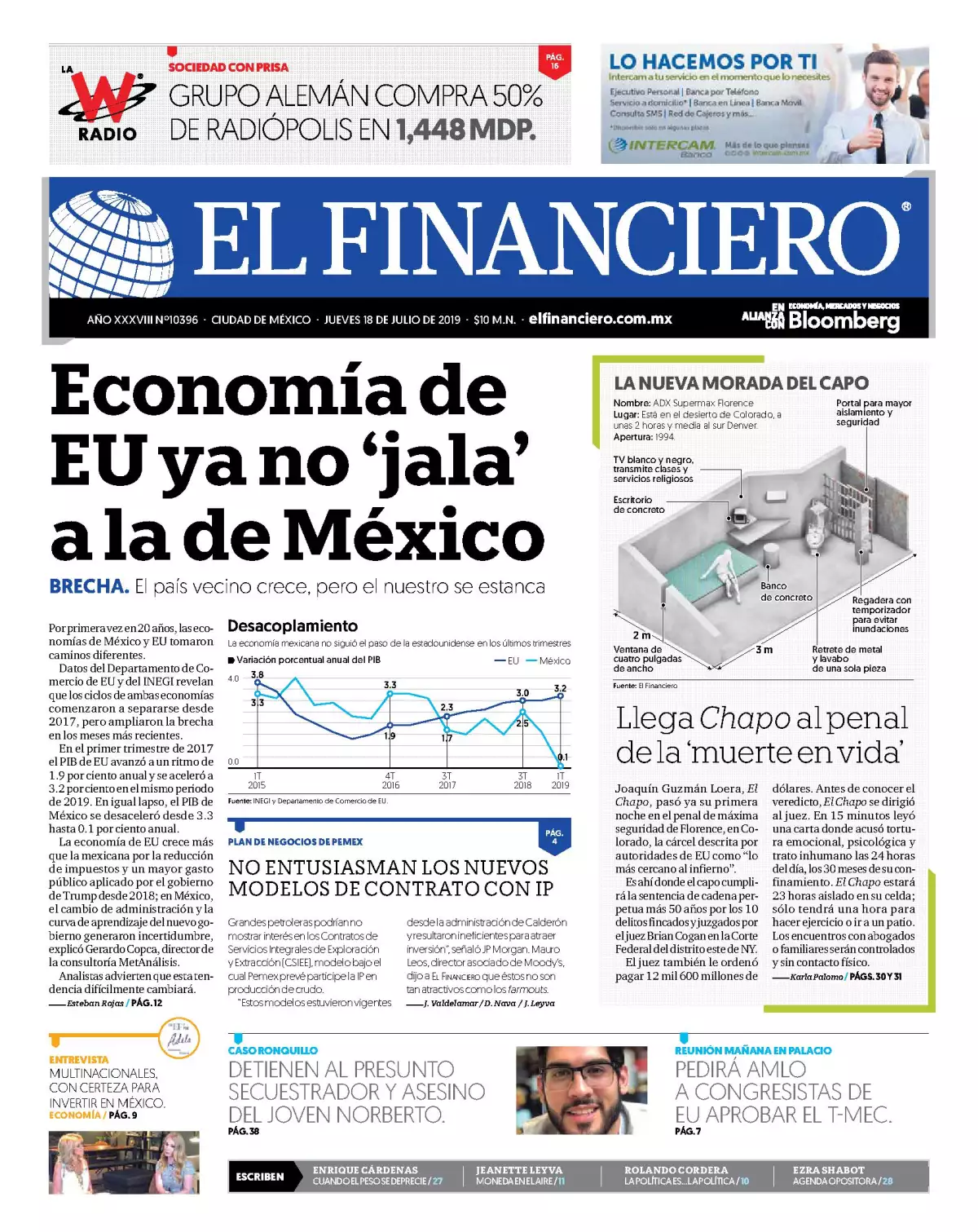 Los ciclos de la economía mexicana y la de Estados Unidos se separaron y no solo marchan a diferente velocidad, sino en direcciones opuestas, algo que no sucedía en lo que va del presente siglo, publica El Financiero . La economía mexicana no se pudo subir al ‘carro’ de la recuperación de la locomotora representada por la economía estadounidense desde principios de 2017, pero particularmente en lo que va de la era de Donald Trump.
