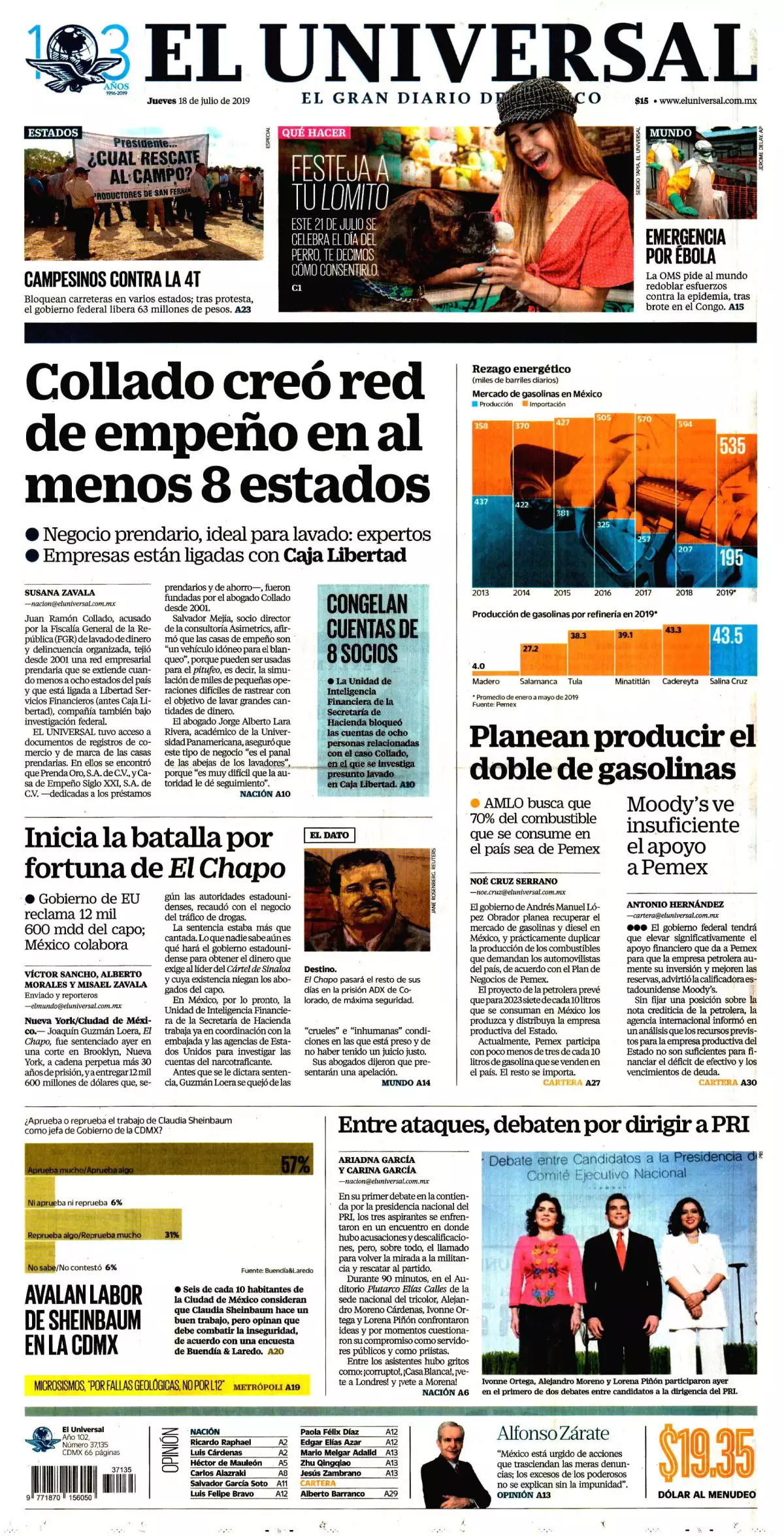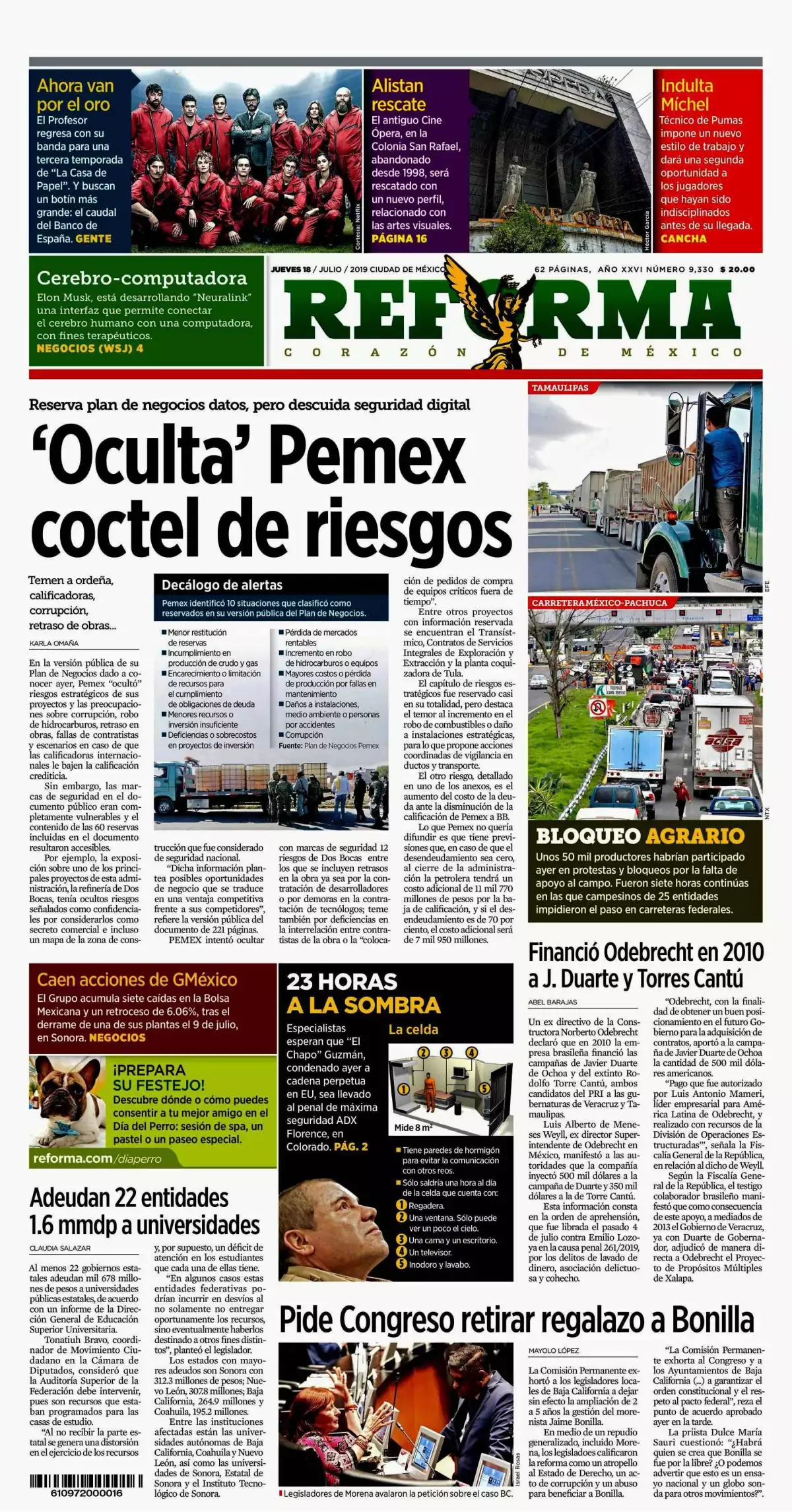 Sobre el mismo tema, La Jornada destaca que El equipo defensor declaró ayer que Guzmán Loera apelará del veredicto y la condena, debido a que hubo irregularidades y causas en su juicio suficientes para presentar un argumento ante un tribunal de apelaciones en un intento final por anular el proceso. William Purpura, otro de los abogados de El Chapo,comentó a periodistas que hay posibilidades que esto proceda, pero no muchas: “Ciento por ciento de este tipo de casos se apelan, pero 99 por ciento es rechazado”.
