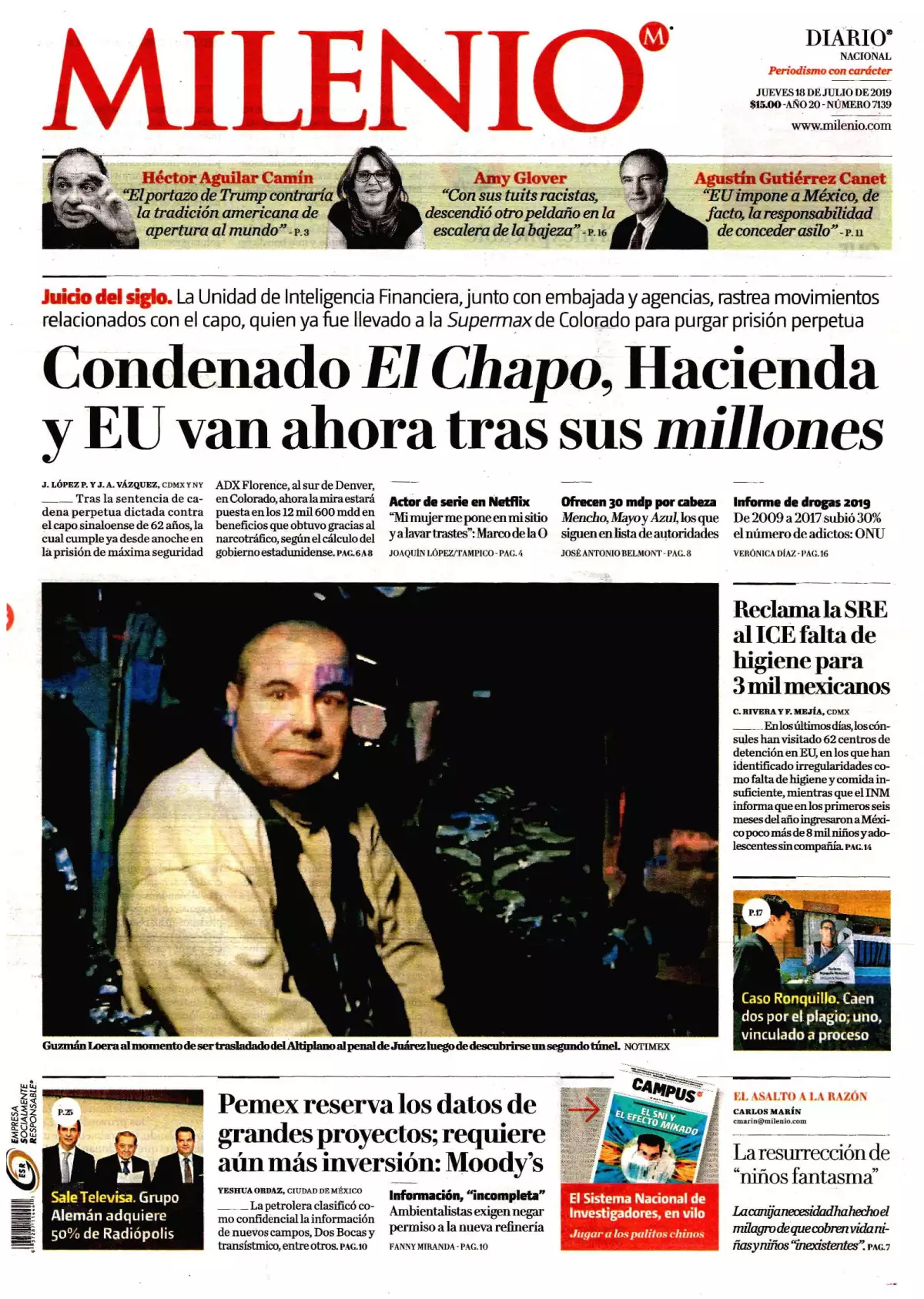 Cadena perpetua a El Chapo; va EU por 12 mil 666 mdd