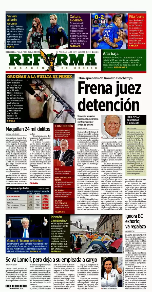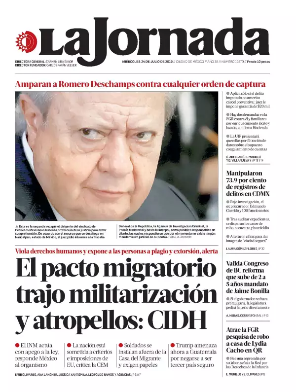 Un juez federal del Estado de México suspendió en forma indefinida cualquier orden de aprehensión o presentación que las autoridades judiciales o ministeriales hayan librado en contra del líder del sindicato petrolero, Carlos Romero Deschamps, reporta Reforma. El Juez Décimo Cuarto de Distrito, con sede en Naucalpan, Raúl García Camacho, concedió la suspensión definitiva al ex senador del Partido Revolucionario Institucional, en una demanda de amparo que promovió desde el pasado 11 de julio, según los listados judiciales.
