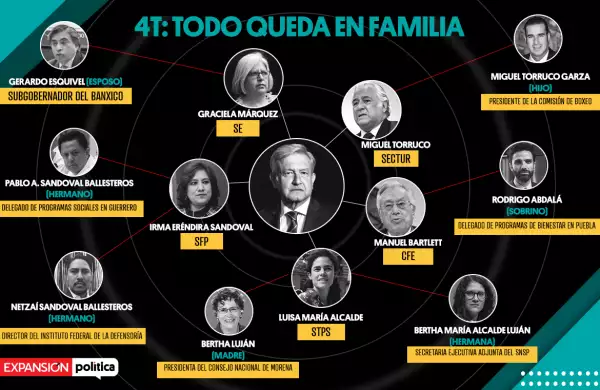 Entre los más conocidos está el de la titular de la Función Pública, Irma Eréndira Sandoval Ballesteros, quien junto con su hermano Pablo Amílcar, fue elegida por el presidente, de manera directa, para ocupar un puesto en su administración.