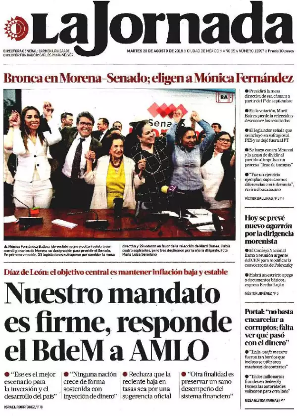 Las diferencias surgidas este lunes durante la votación interna de Morena para renovar la Mesa Directiva del Senado, la cual llevó a Martí Batres a reclamarle a Ricardo Monreal, uno de los temas principales que destacan los diarios.