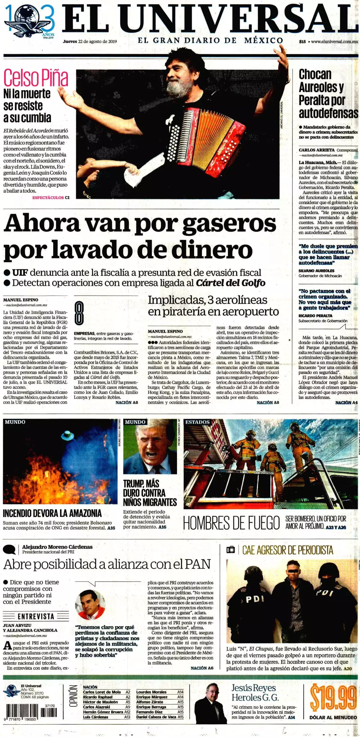 La Unidad de Inteligencia Financiera (UIF) denunció ante la Fiscalía General de la República la existencia de una presunta red de lavado de dinero y evasión fiscal integrada por ocho empresas del ramo del gas, gasolina y outsourcing, algunas de ellas vinculadas por el Departamento del Tesoro de Estados Unidos con la delincuencia organizada, reporta El Universal. La denuncia —presentada el pasado 10 de julio por la UIF ante la fiscalía— es contra las empresas KNG Ultra, S.A. de C.V. (Ultragas México), Distribuidora Mexicana de Gas LP, S.A., Servicios Enfocados para Empresas Mexicanas, S.A., Thori Empresarial y Comercio, S.A. de C.V., Consultoría de Gestión Empresarial Lebrija, S.A. de C.V., Transportadora Zeta, S.A de C.V, Combustibles Briones, S.A de C.V, y Free Industrial, S.A. de C.V.