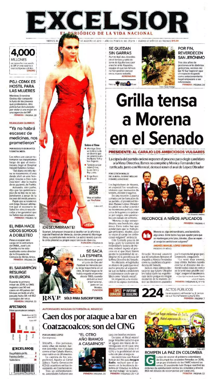 Sobre el mismo tema, Excélsior destaca cómo los legisladores de Morena, en especial los senadores, vivieron este jueves momentos de tensión, división y regaños. En una reunión a puerta cerrada con las bancadas de su partido, el presidente Andrés Manuel López Obrador les pidió no echar a perder su movimiento político, estar cerca de la gente y no pelearse por cargos, sino ganárselos con trabajo en territorio. “Morena es algo extraordinario, una bendición, algo único. Entre todos hay que ayudar para que se mantengan principios, ideales. ¡Que se vayan al carajo los ambiciosos vulgares!”, sentenció.