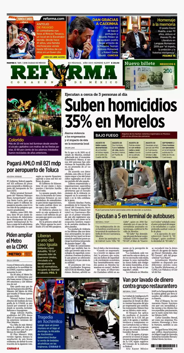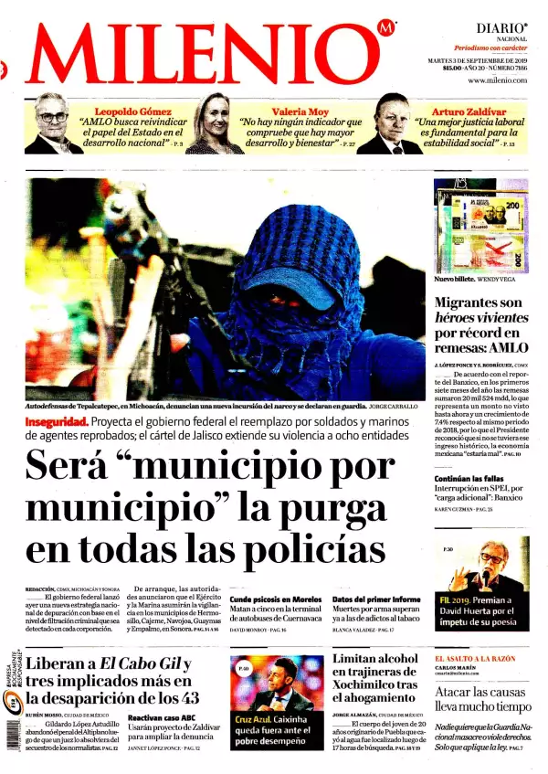 Excélsior detalla que el Plan Nacional de Depuración de los cuerpos policiacos arrancó en Sonora para evitar la penetración del crimen organizado en dichas corporaciones. Alfonso Durazo Montaño, secretario de Seguridad y Protección Ciudadana, explicó que se trata de un programa piloto que inició en Guaymas y Empalme, pero que se hará a nivel nacional.