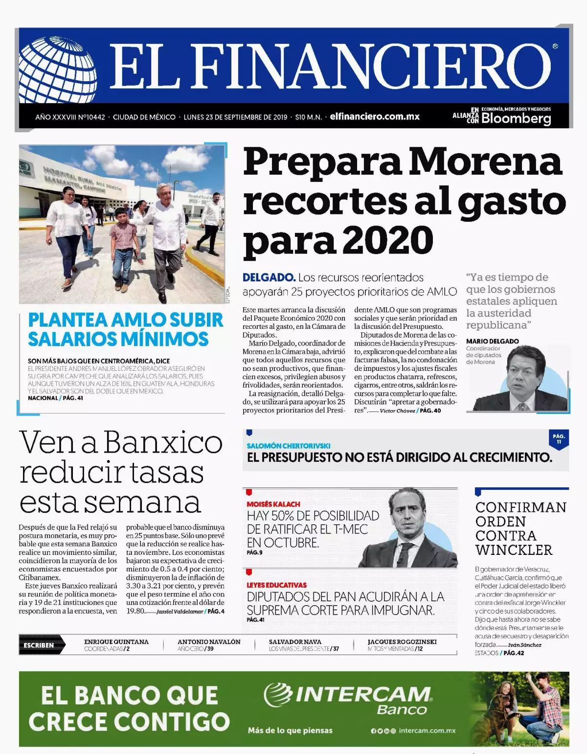 Pasada la discusión de las leyes educativas, la Cámara de Diputados retomará esta semana los trabajos para el procesamiento del Paquete Económico 2020, y el coordinador del grupo mayoritario de Morena, Mario Delgado, anunció que “para comenzar habrá nuevos recortes al gasto”. De acuerdo con los primeros análisis, reseña El Financiero, habrá nuevos recortes “al gasto que no es productivo, el que financia excesos, privilegios, abusos, frivolidades; es el resultado de austeridad republicana y sí habrá una reorientación de recursos”, anticipó.