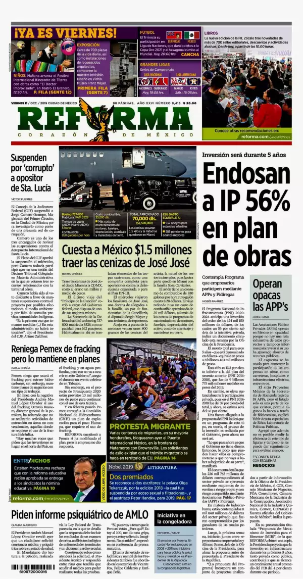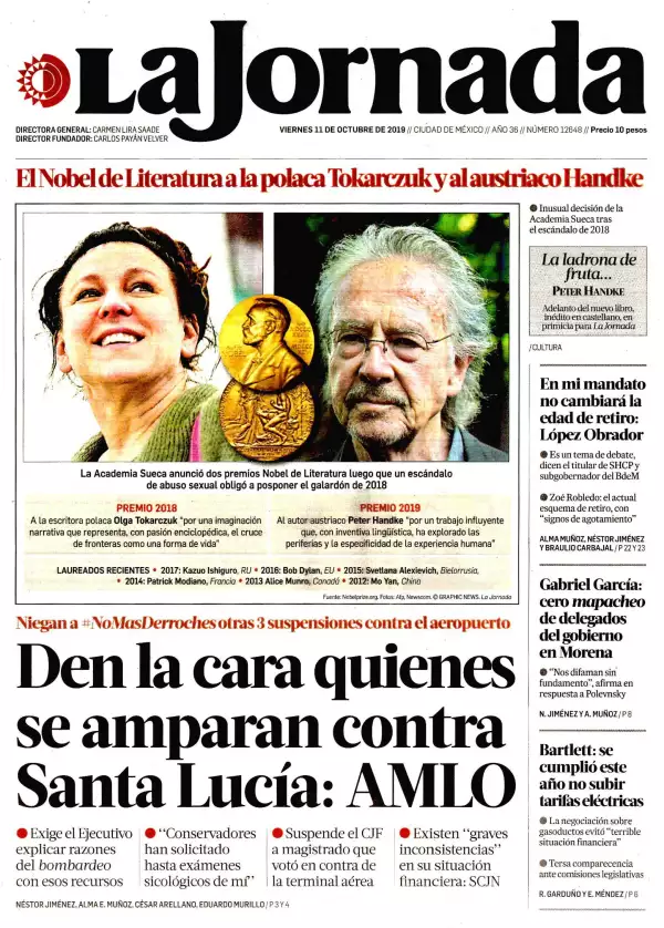 Quienes han promovido los 140 amparos contra el aeropuerto de Santa Lucía deben dar la cara y explicar sus razones para intentar frenar la obra, sostuvo el presidente Andrés Manuel López Obrador, quien recordó que en su momento él argumentó su rechazo al proyecto en el lago de Texcoco, reseña La Jornada. En este contexto, reveló que los conservadores le pidieron, a través del Instituto Nacional de Transparencia, Acceso a la Información y Protección de Datos Personales, exámenes sicológicos, cardiovasculares y hasta de orina, lo que recibió con sarcasmo, pues dijo que se encuentra al cien en cuestión de salud.