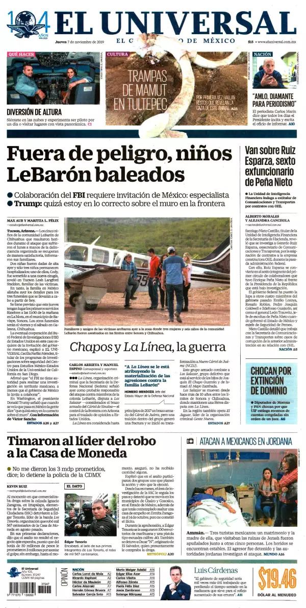 El gobierno de Estados Unidos se ha involucrado directamente en el caso del asesinato de tres mujeres y seis niños de las familias LeBarón y LangFord, ambas de nacionalidad estadounidense. El FBI tendrá acceso al expediente de esta matanza, en tanto que el presidente Donald Trump insiste en ayudar a México y ahora incluso ha empleado esta matanza para insistir en la construcción del muro fronterizo.