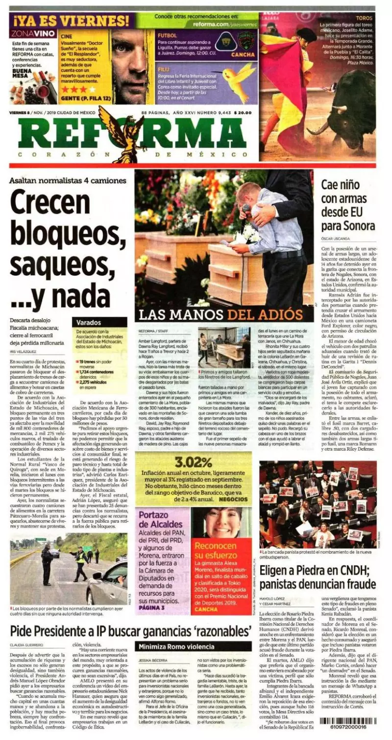 En su cuarto día de protestas, normalistas de Michoacán pasaron de bloquear el desplazamiento de trenes de carga a secuestrar camiones de alimentos y botear en casetas de cobro de carreteras, consigna Reforma . De acuerdo con la Asociación de Industriales del Estado de Michoacán, el bloqueo permanente en tres puntos de las vías del tren ya afectaba ayer la movilidad de mil 800 contenedores de mercancías, 2 mil 275 vehículos nuevos, el traslado de combustóleo de Pemex y la operación de diversos sectores industriales.