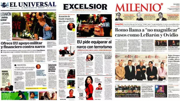 Otros temas que resaltan son los planes del gobierno de México de hacer una compra masiva de armas y balas para 2020, en el caso de El Universal, y la promesa incumplida de cancelar los seguros de gastos médicos mayores, en el caso de Reforma.