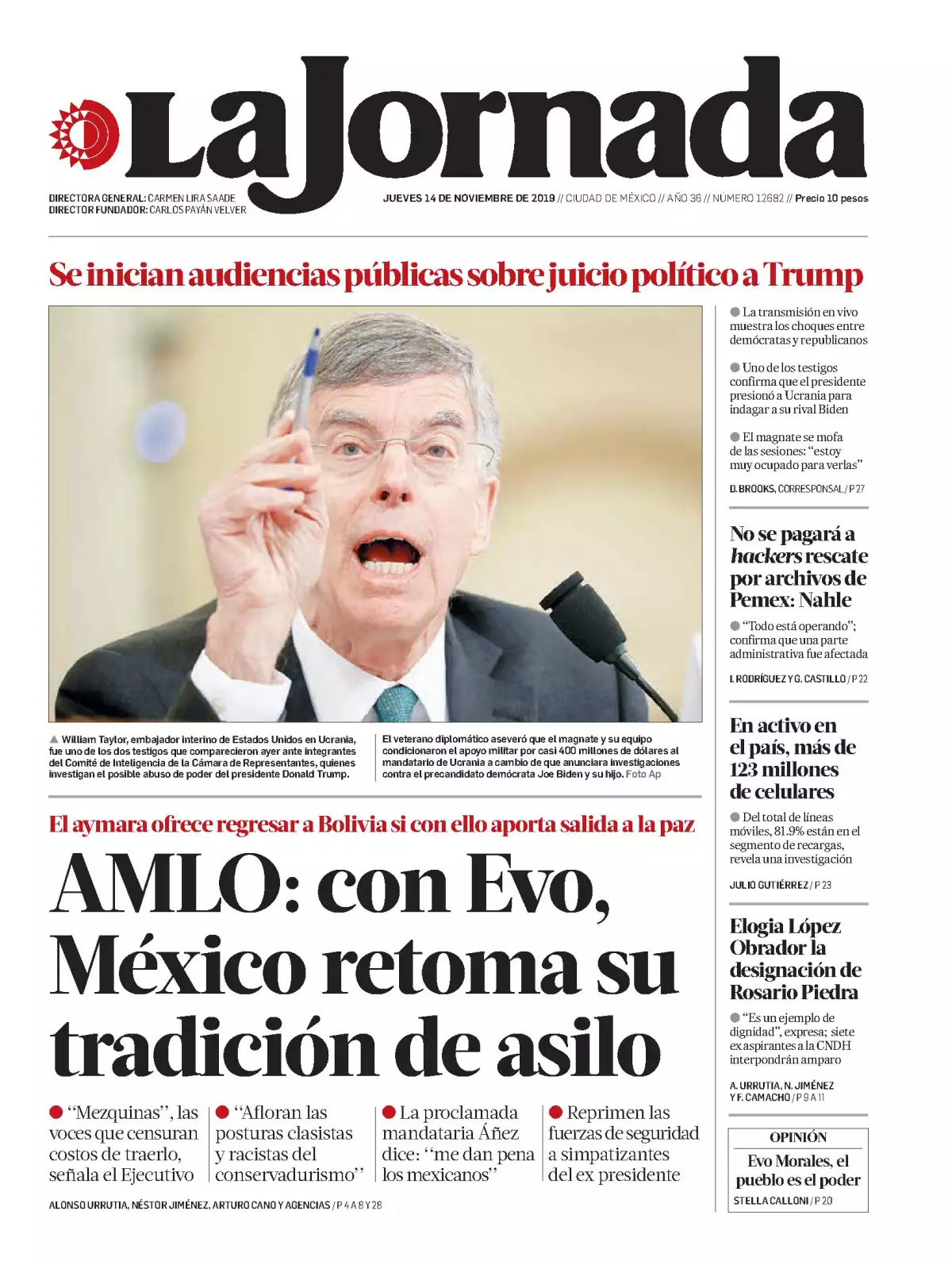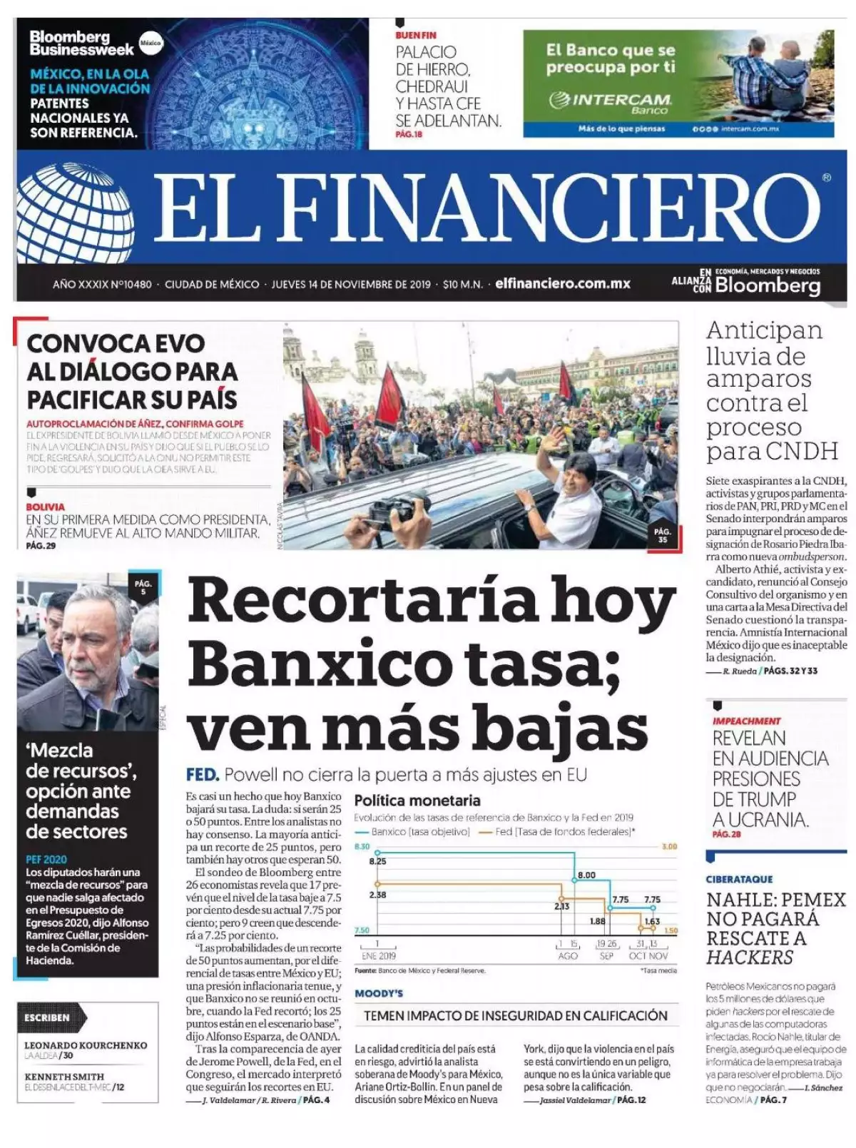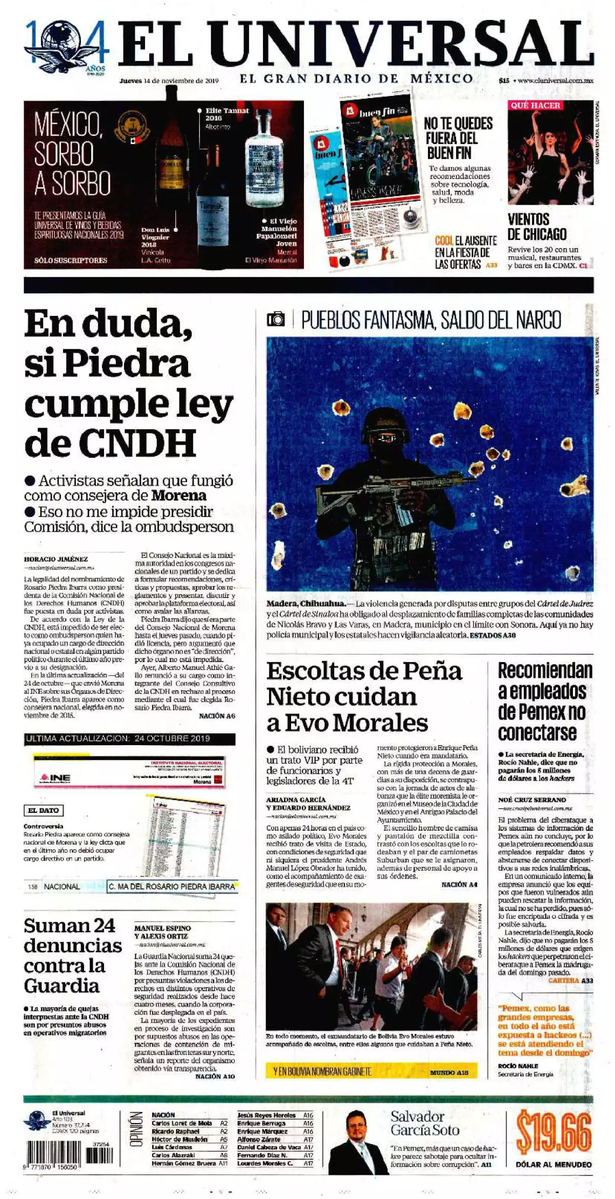 El uso del Estado Mayor Presidencial (EMP) para cuidar al expresidente de Bolivia, Evo Morales, es uno de los temas que figuran en las portadas, además de otros aspectos de las primeras actividades en México del exmandatario.