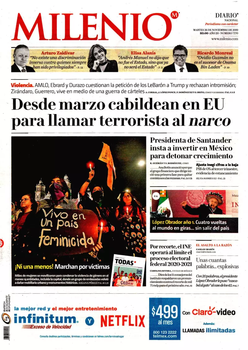 Una iniciativa de ley en el Congreso de Estados Unidos busca considerar como organizaciones terroristas a los cárteles del narcotráfico mexicanos y señala en concreto a tres grupos: el cártel de Jalisco Nueva Generación (CJNG), el cártel del Noreste (CDN), facción de Los Zetas, y Los Metros, facción del cártel del Golfo (CDG), publica Milenio. La propuesta legislativa fue llevada al Congreso desde el mes de marzo de manera paralela por los republicanos Roy Chip y Mark Green. Ha sido turnada al Comité Judicial de la Cámara de Representantes y cuenta ya con el apoyo de nueve integrantes de la bancada republicana, que se han sumado al proyecto en este mes. Aún no concluye su ruta jurídica, que incluye pasar al Senado.