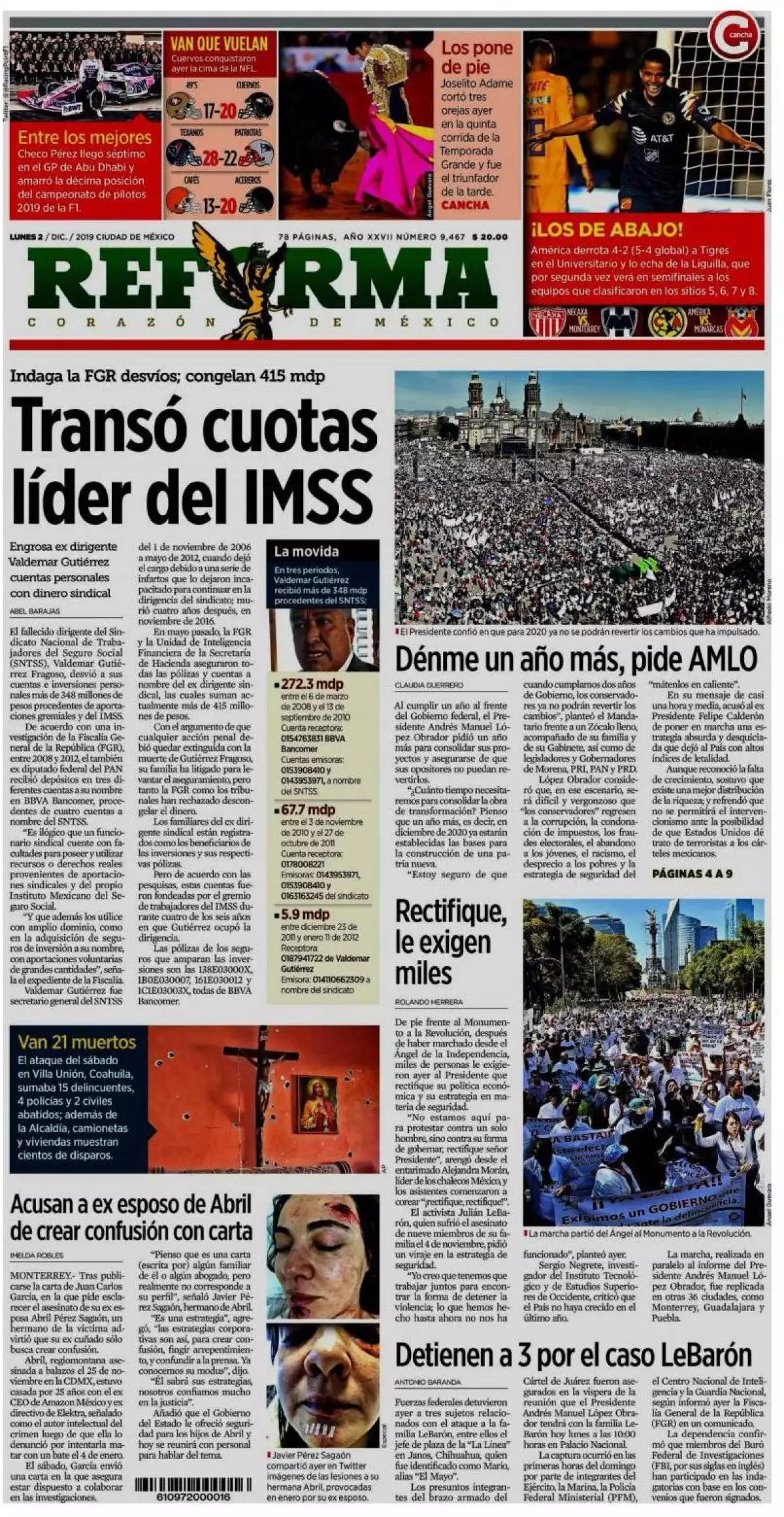 El fallecido dirigente del Sindicato Nacional de Trabajadores del Seguro Social (SNTSS), Valdemar Gutiérrez Fragoso, desvió a sus cuentas e inversiones personales más de 348 millones de pesos procedentes de aportaciones gremiales y del IMSS. Reforma señala que de acuerdo con una investigación de la Fiscalía General de la República (FGR), entre 2008 y 2012, el también ex diputado federal del PAN recibió depósitos en tres diferentes cuentas a su nombre en BBVA Bancomer, procedentes de cuatro cuentas a nombre del SNTSS.