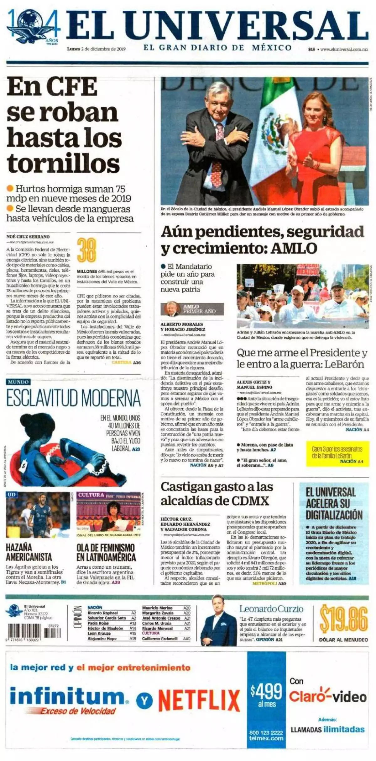 Al robo de energía eléctrica que le cuesta a la Comisión Federal de Electricidad (CFE) 30 mil millones de pesos anuales se suma otro huachicoleo hormiga, silencioso, que la empresa no reporta públicamente, pero que en los primeros nueve meses del año le costó otros 75 millones de pesos, publica El Universal. Se trata del robo de toda clase de equipo: materiales, herramientas, rieles, placas, clavos para durmientes, cronómetros, controladores de carga, tanques de gas, mangueras, cable conductor de cobre, teléfonos fijos, equipos de cómputo, impresoras, laptops, video proyectores, sistemas de aire acondicionado, pantallas, conectores zapata de cobre, cuchillas y válvulas de llenado de tanque, entre otros.
