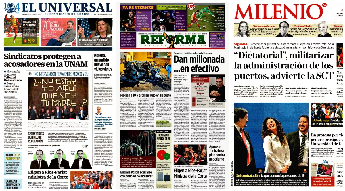La presidenta de la Cámara de Representantes, Nancy Pelosi, ordenó la formulación de cargos para la destitución del presidente lo antes posible –algunos creen que se podrían aprobar antes de Navidad–, con el argumento de que Donald Trump ha puesto "en peligro nuestra república", destaca La Jornada. En breve declaración desde el Capitolio, la demócrata más poderosa de Washington afirmó que las conclusiones de las pesquisas realizadas por la cámara en los últimos dos meses dejaron claro que Trump abusó de su poder, violando su juramento al promover la interferencia extranjera en las elecciones estadunidenses. Proclamó que "en Estados Unidos nadie está por encima de la ley".