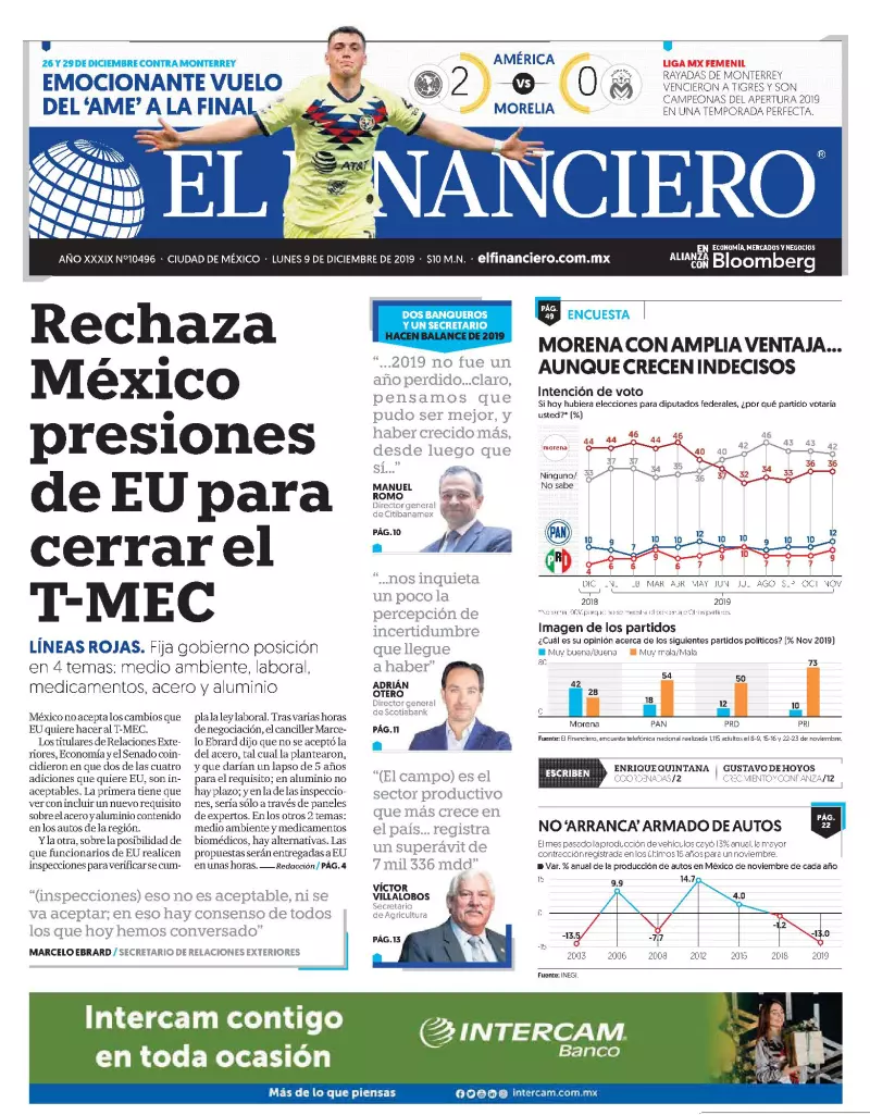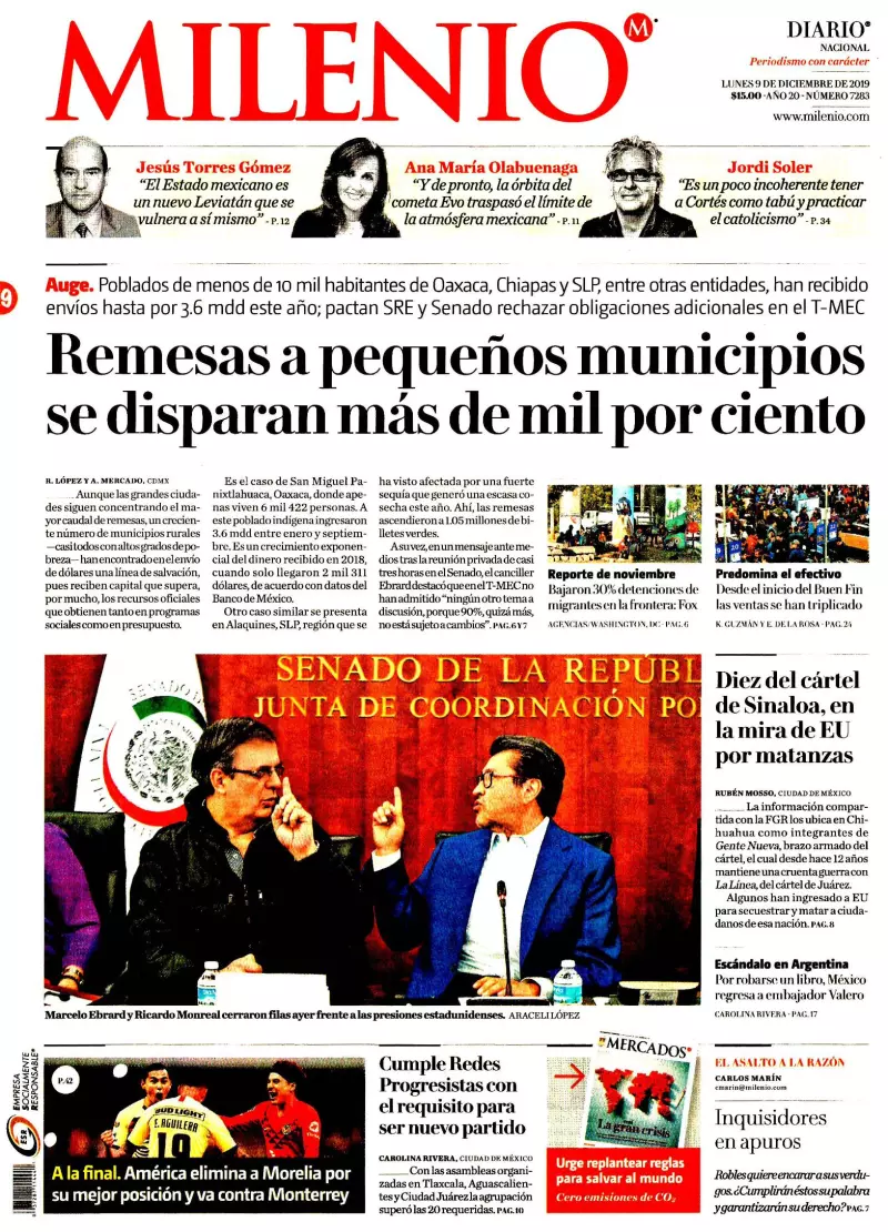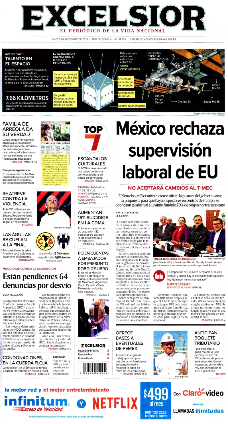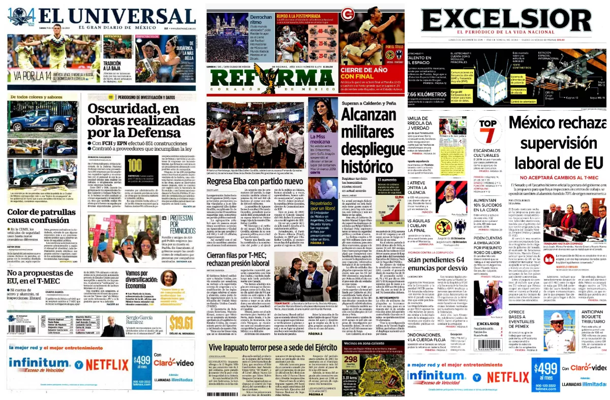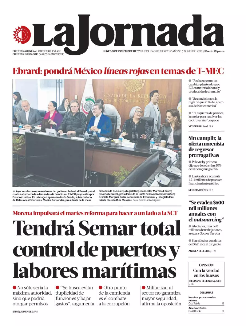 El Estado mexicano rechazó la propuesta para que supervisores estadounidenses inspeccionen los centros laborales mexicanos, medida que el gobierno del país vecino exige para la ratificación del Tratado México, Estados Unidos y Canadá (T-MEC), reseña Excélsior. Al concluir una reunión con otros secretarios de Estado e integrantes de los órganos de gobierno del Senado, el secretario de Relaciones Exteriores, Marcelo Ebrard, subrayó que la presencia de funcionarios de EU en las compañías mexicanas “no es aceptable ni se va a aceptar”, e insistió en el uso de paneles conformados por representantes de los tres países para dirimir controversias.
