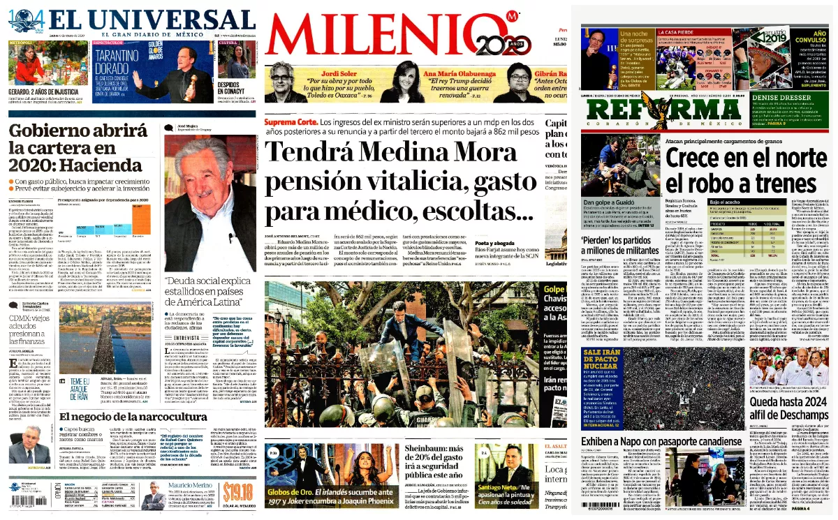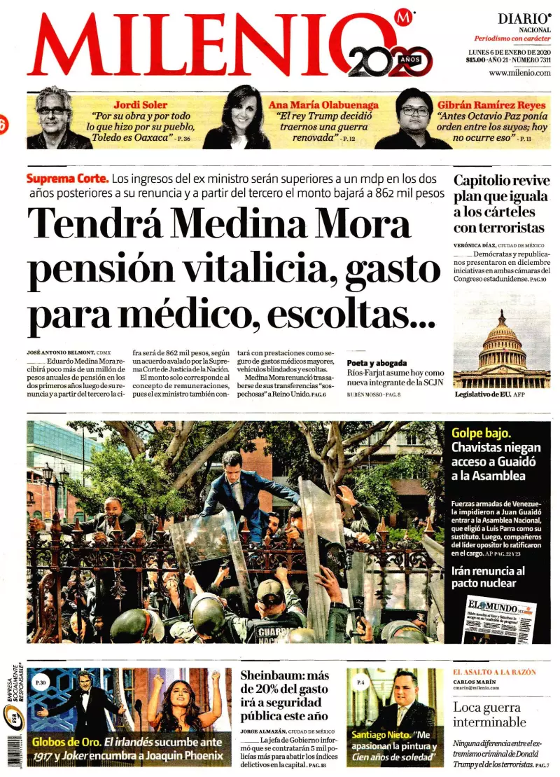 En tanto, Milenio consigna que Eduardo Medina Mora recibirá cada año de por vida más de 860 mil pesos por haber sido ministro de la Suprema Corte de Justicia de la Nación (SCJN) menos de cinco años.