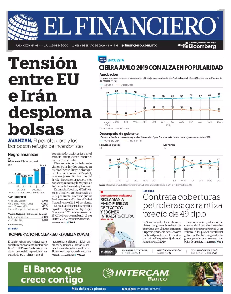 El gobierno ahora sí espera echar a andar la maquinaria del gasto público a una mayor velocidad en el primer semestre de 2020, señala El Universal. A diferencia de lo ocurrido el año pasado, que con datos a noviembre de 2019 el gobierno reportó un subejercicio de 149.8 mil millones de pesos, para el presente ejercicio fiscal prevé tener un ritmo más acelerado desde el principio.