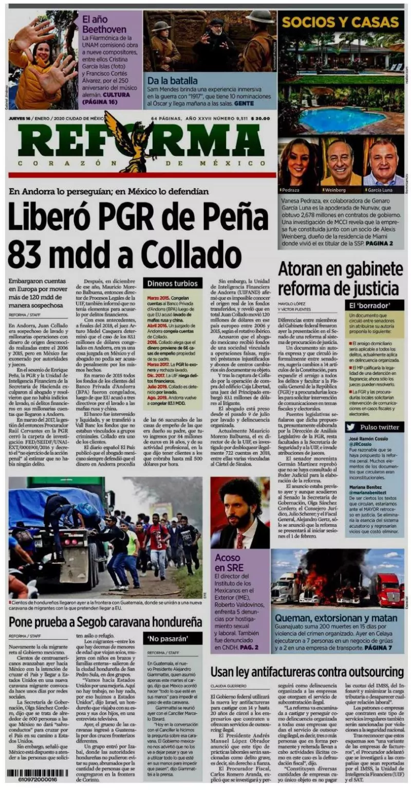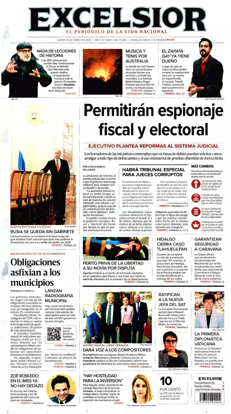 La propuesta de reforma al sistema judicial abre la puerta a que el gobierno intervenga teléfonos para combatir delitos fiscales y electorales, destaca Excélsior. “La autoridad judicial federal no podrá otorgar estas autorizaciones cuando se trate de materias de carácter mercantil, civil, laboral o administrativo, ni en el caso de las comunicaciones del detenido con su defensor”, señalan los borradores.