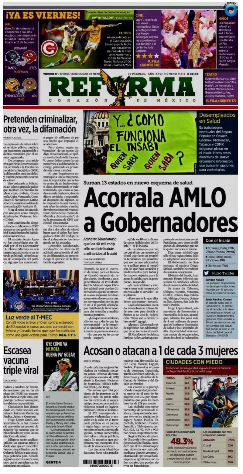 Después de que el Instituto de Salud para el Bienestar (Insabi) arrancó sin reglas claras, desabasto y caos generalizado, el Presidente Andrés Manuel López Obrador advirtió ayer que los Gobernadores que no se sumen al nuevo esquema tendrán acceso sólo a los recursos que les corresponden por ley, destaca Reforma, pero no a la partida adicional que distribuirá la Federación para dar atención y medicamentos gratuitos.