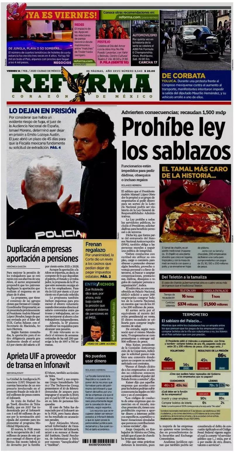 En tanto, Reforma señala que el ‘sablazo’ que el presidente Andrés Manuel López Obrador “le propinó a un grupo de empresarios al pedir dinero para un sorteo de la Lotería Nacional podría ser violatorio de la Ley General de Responsabilidades Administrativas”.