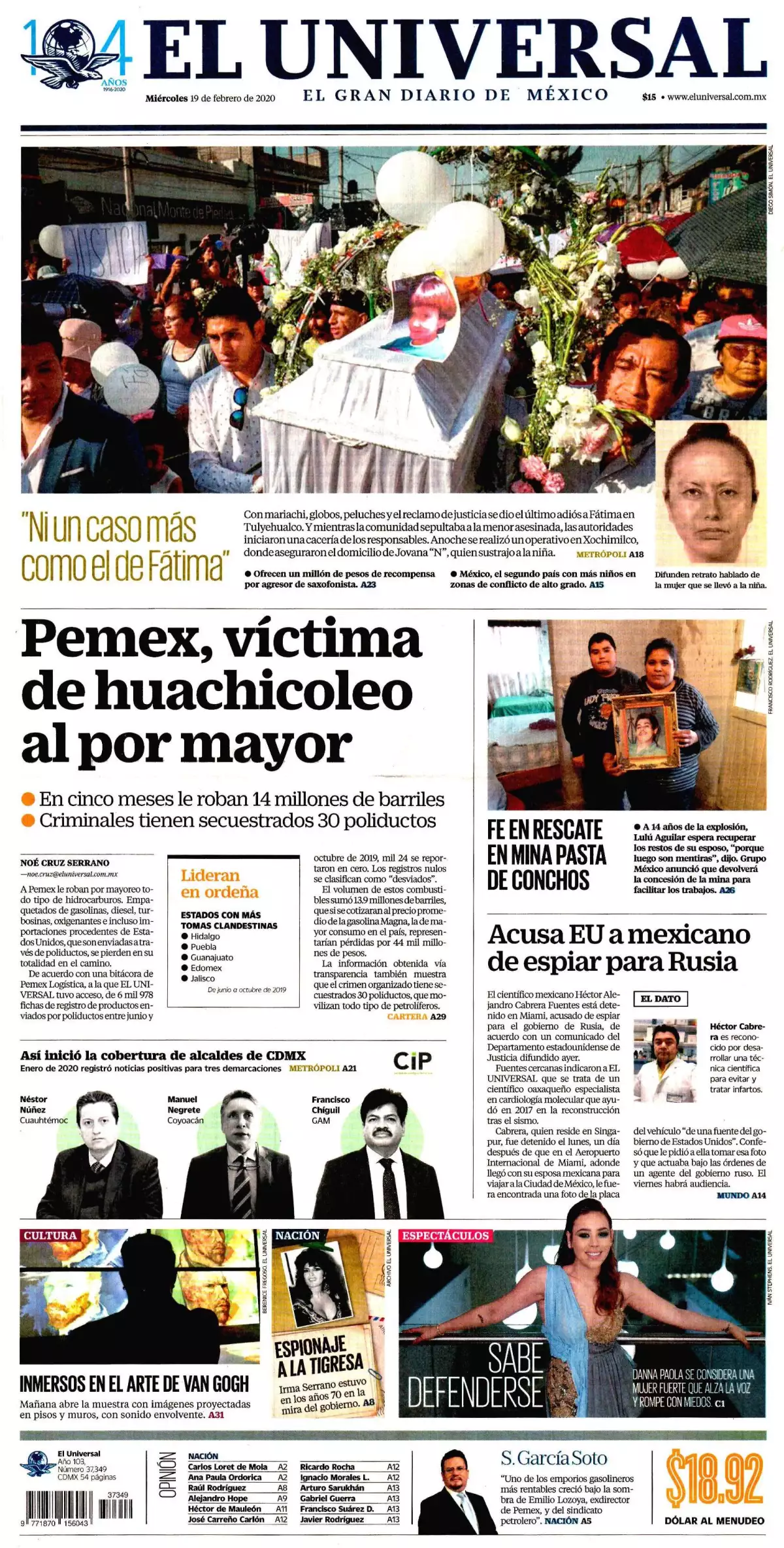 La suerte de Fátima la definieron los errores y la omisión de reglas que ya existen. Al menos cuatro medidas que hubieran sido fundamentales para la pronta localización de la menor fallaron: el protocolo de entrega a los menores en las escuelas, la emisión inmediata de la Alerta Amber, la apertura de la investigación y la búsqueda de la niña en las primeras horas de su desaparición, publica Milenio en relación al feminicidio de la menor de 7 años, uno de los temas de portada.