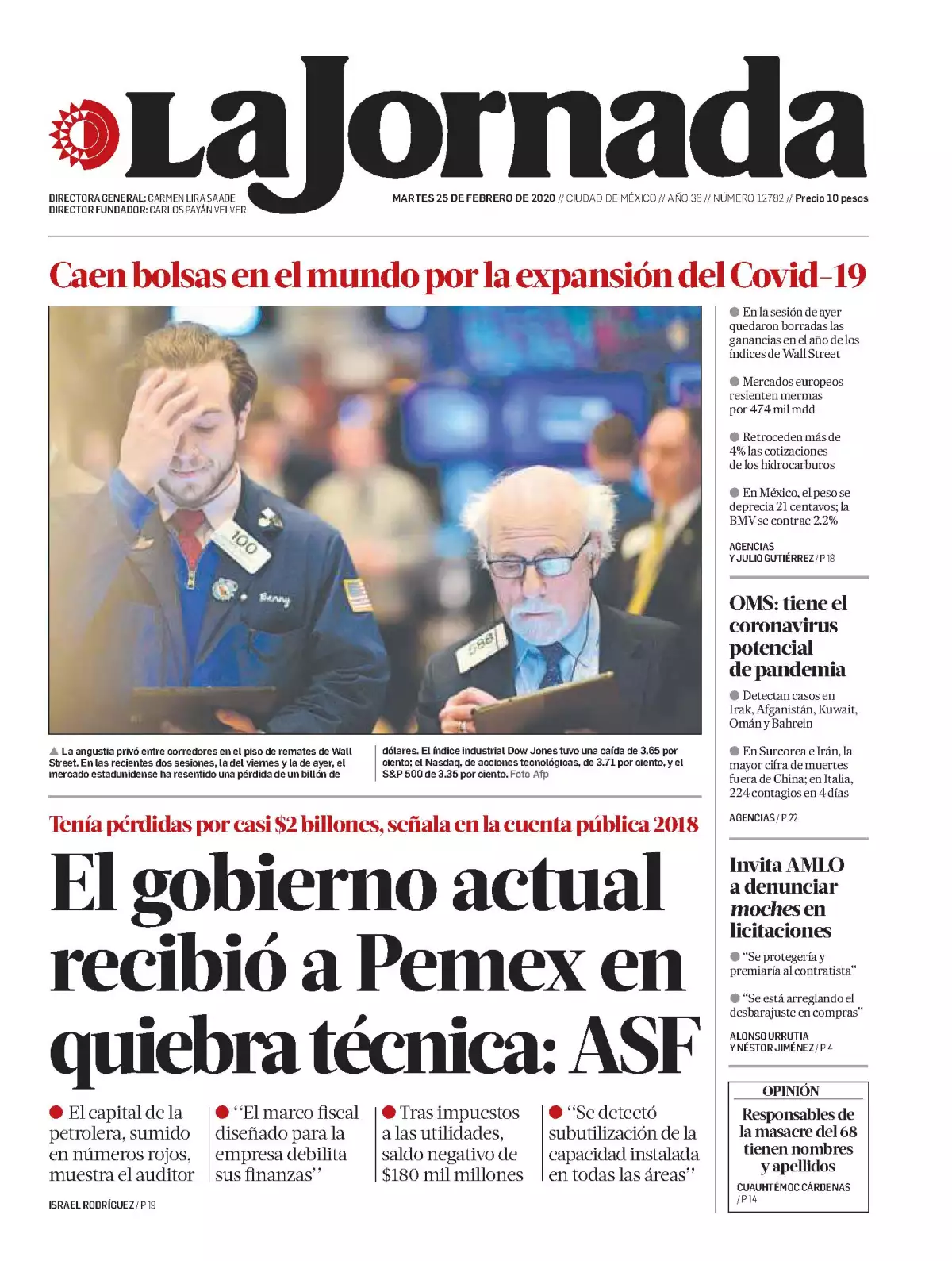 La actual administración federal recibió a Petróleos Mexicanos (Pemex) en "quiebra técnica", indica La Jornada , debido a que acumula pérdidas por un billón 943 mil 106 millones de pesos y un capital contable negativo de un billón 459 mil 405 millones, informó la Auditoría Superior de la Federación (ASF).