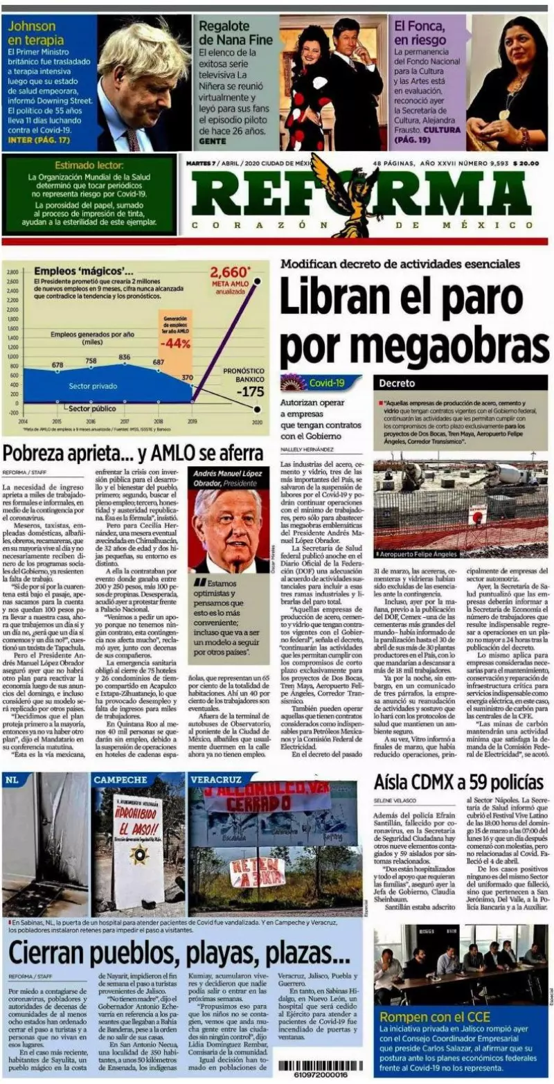 Las industrias del acero, cemento y vidrio, tres de las más importantes del país, se salvaron de la suspensión de labores por el COVID-19, destaca Reforma , y podrán continuar operaciones con el mínimo de trabajadores, pero sólo para abastecer las megaobras emblemáticas del presidente Andrés Manuel López Obrador.