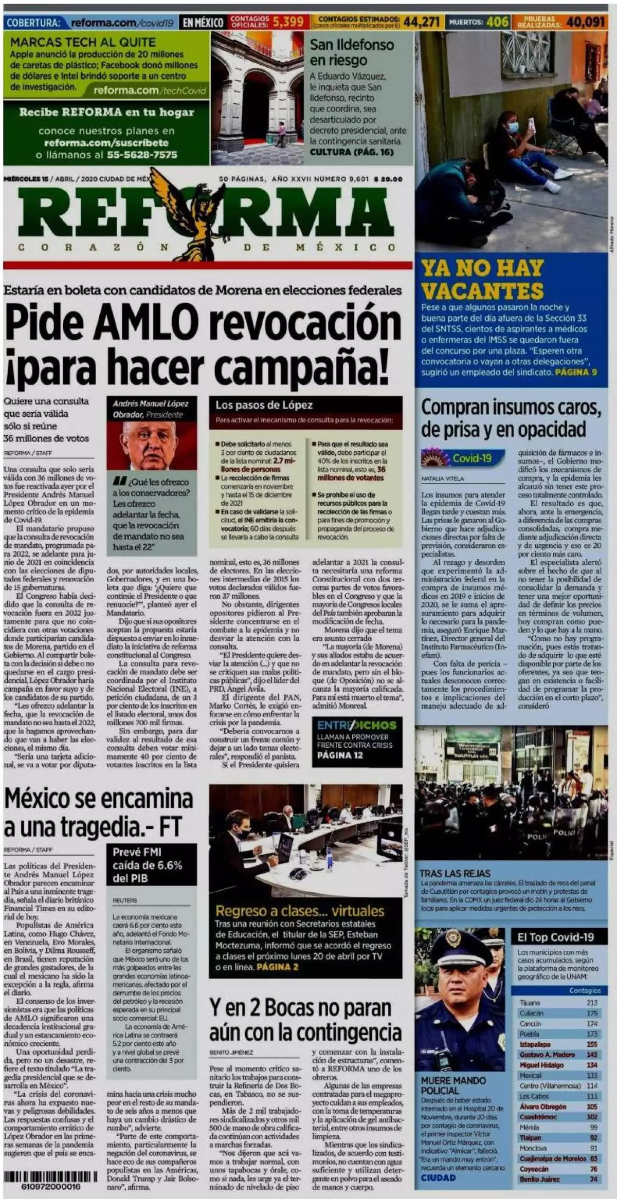 En tanto, Mileno reseña que al menos ocho estados se alistan para un escenario catastrófico por la crisis de coronavirus mediante la compra de miles de bolsas para cadáveres, apoyos para gastos funerarios, apertura de nuevos crematorios y la ampliación de cementerios.