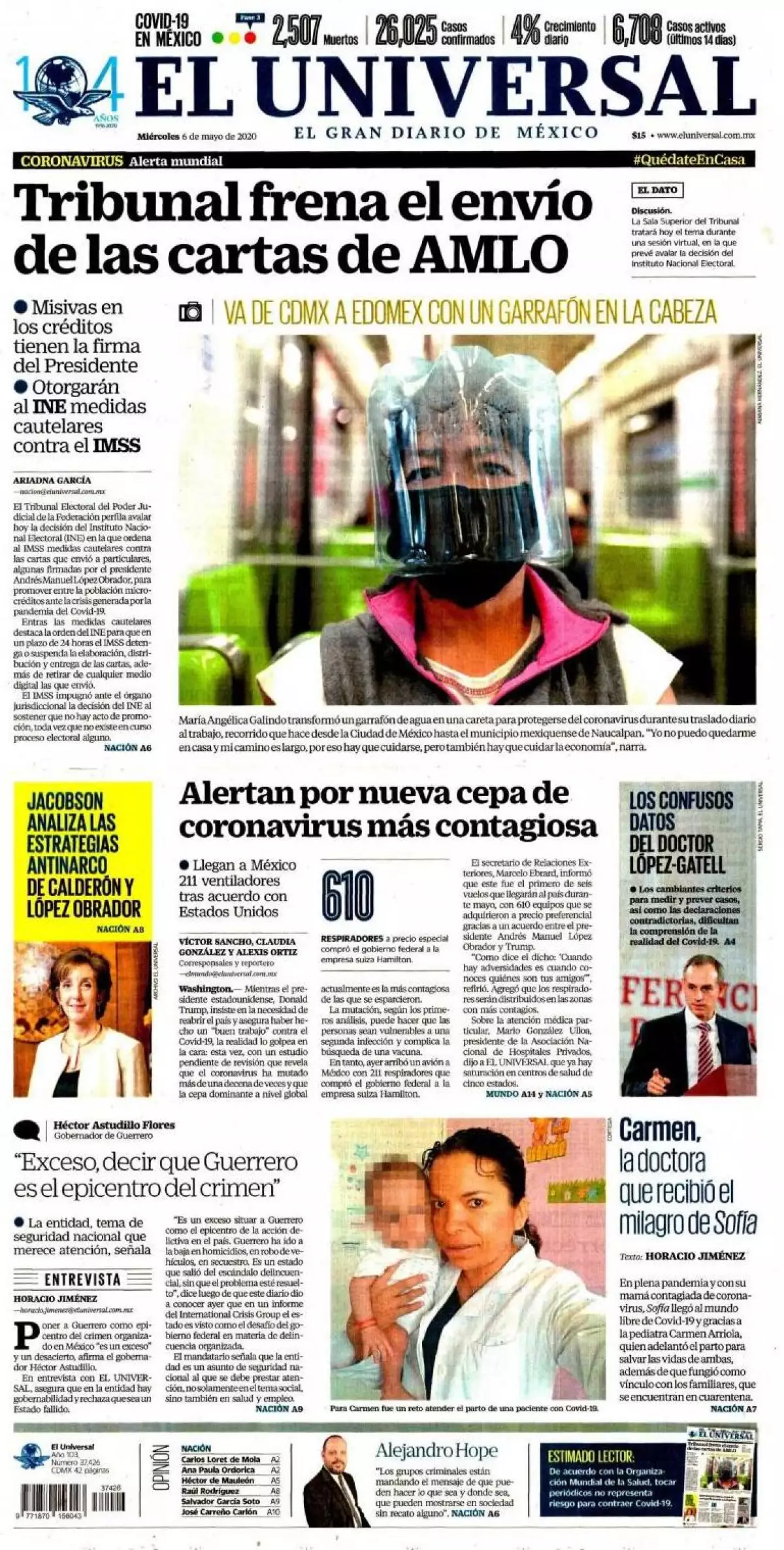 En tanto, El Universal señala que este miércoles la Sala Superior del Tribunal Electoral del Poder Judicial de la Federación (TEPJF) prevé avalar la decisión del INE que emitió medidas cautelares por las cartas que el Ejecutivo federal envió con la firma del presidente Andrés Manuel López Obrador.