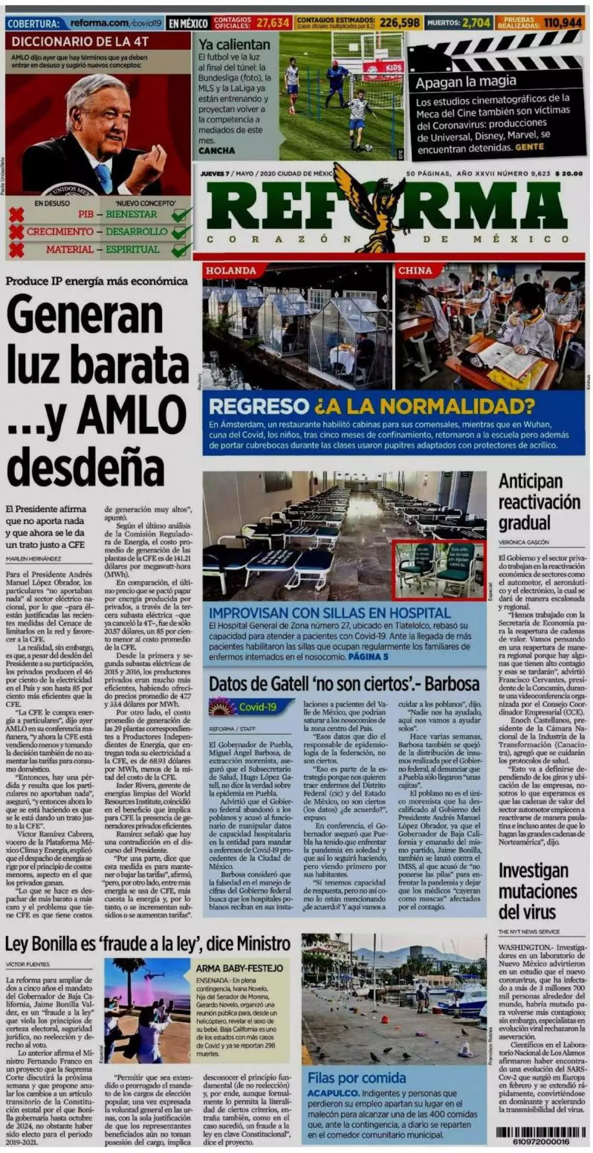 En tanto, Reforma señala que para el presidente Andrés Manuel López Obrador los particulares "no aportaban nada" al sector eléctrico nacional, por lo que -para él- están justificadas las recientes medidas del Cenace de limitarlos en la red y favorecer a la CFE.