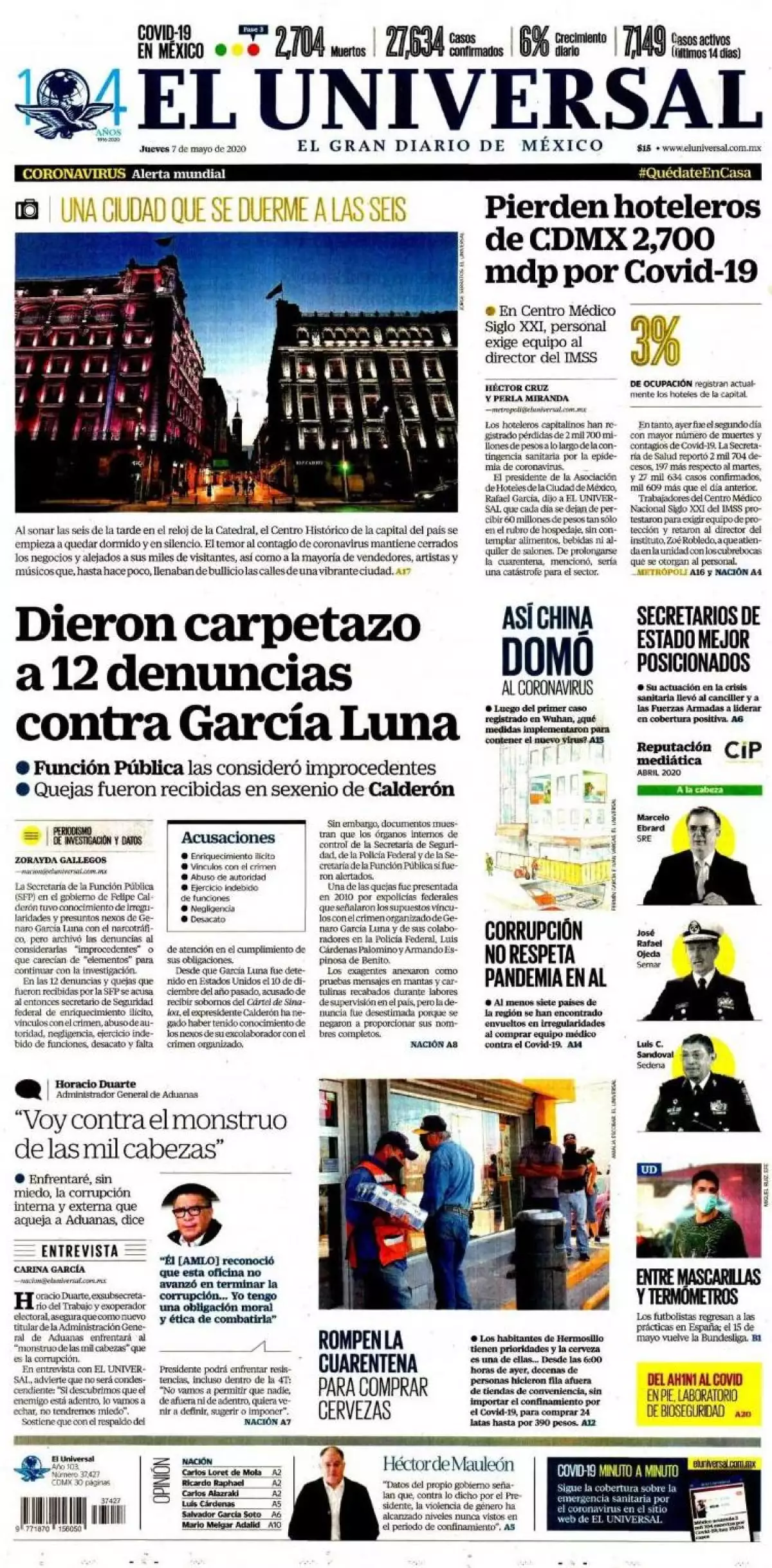 La Secretaría de la Función Pública (SFP) del gobierno de Felipe Calderón sí tuvo conocimiento de las irregularidades y presuntos vínculos de Genaro García Luna con el narcotráfico, pero archivó las denuncias al considerarlas “improcedentes” o que “carecían de elementos” para continuar con la investigación, refiere El Universal en uno de los temas de portada.