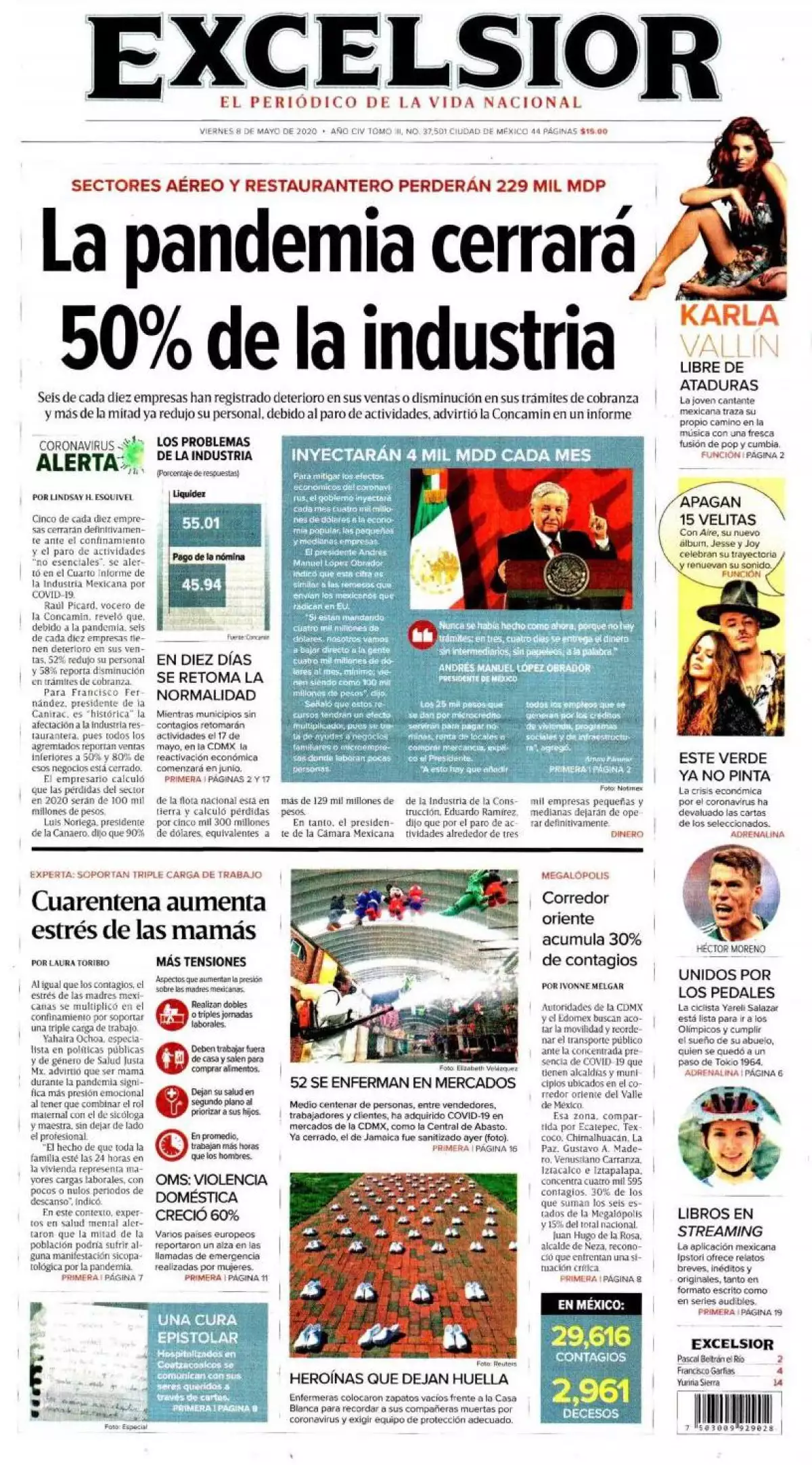 Cinco de cada diez empresas cerrarán definitivamente ante el confinamiento y el paro de actividades “no esenciales”, se alertó en el Cuarto Informe de la Industria Mexicana por COVID-19, destaca Excélsior. Raúl Picard, vocero de la Concamin, reveló que, debido a la pandemia, seis de cada diez empresas tienen deterioro en sus ventas, 52% redujo su personal y 58% reporta disminución en trámites de cobranza.