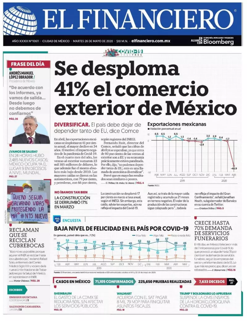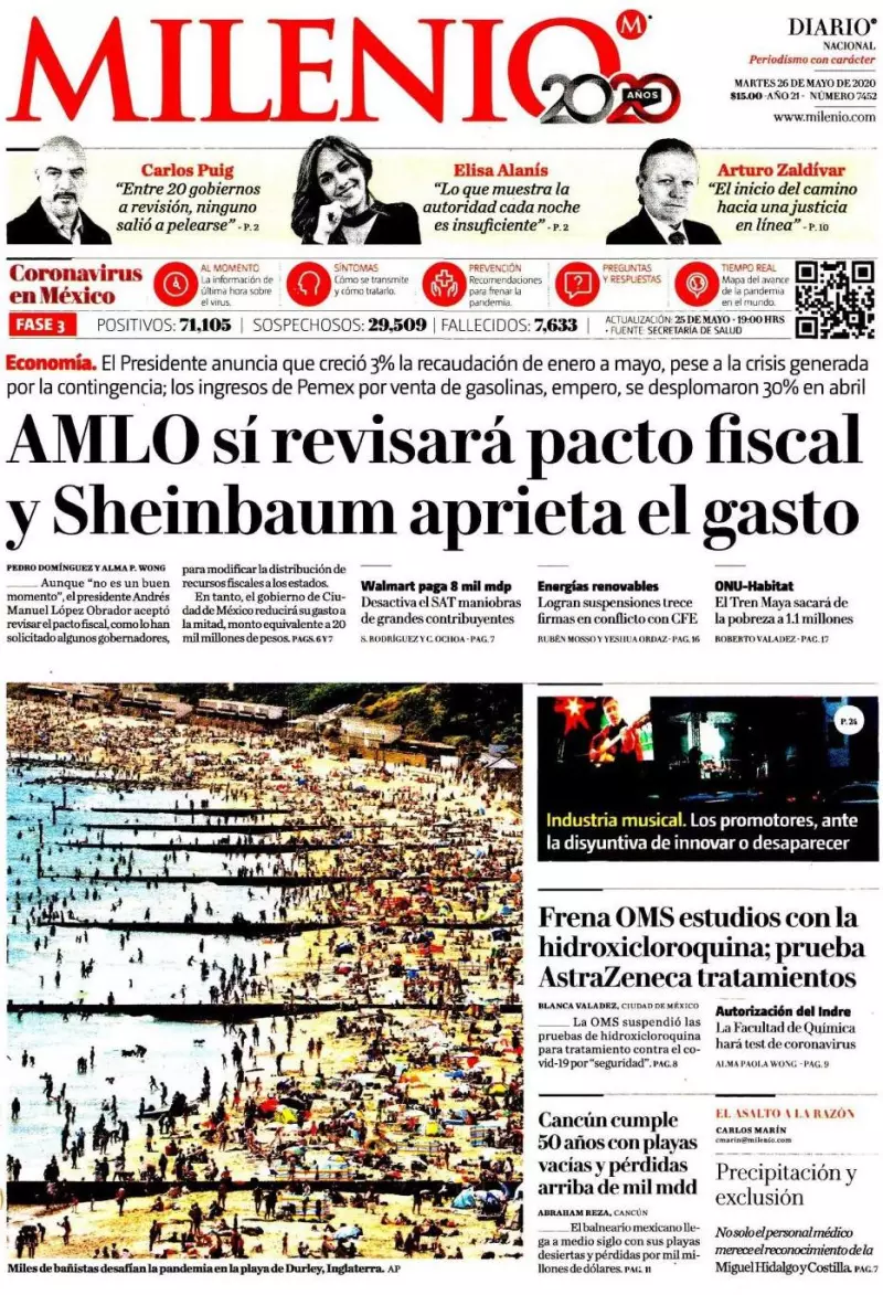 Aunque consideró que no es un buen momento, el presidente Andrés Manuel López Obrador aceptó hacer un análisis del pacto fiscal como lo han solicitado algunos gobernadores, con la finalidad de modificar la distribución de recursos a los estados, reseña Milenio. En tanto, La jefa de Gobierno de la CDMX, Claudia Sheinbaum, anunció que reducirá el gasto público este año en 20 mil millones de pesos y no afectará los servicios públicos, tampoco habrá despidos en las dependencias ni afectaciones al salario de los trabajadores de base.